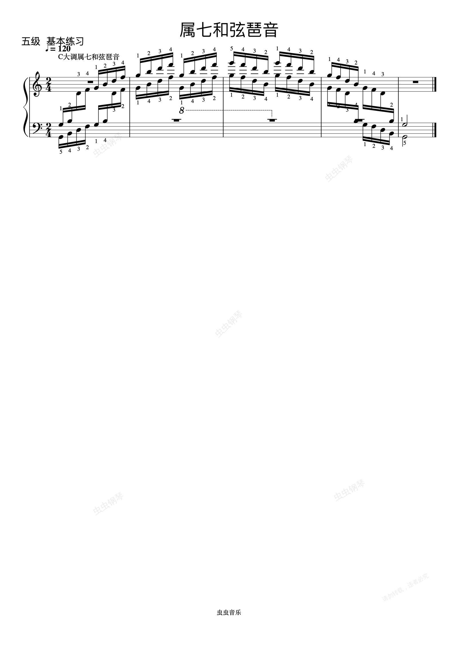钢琴谱: C大调属七和弦琶音《 ZYY 钢琴考级曲目 1》