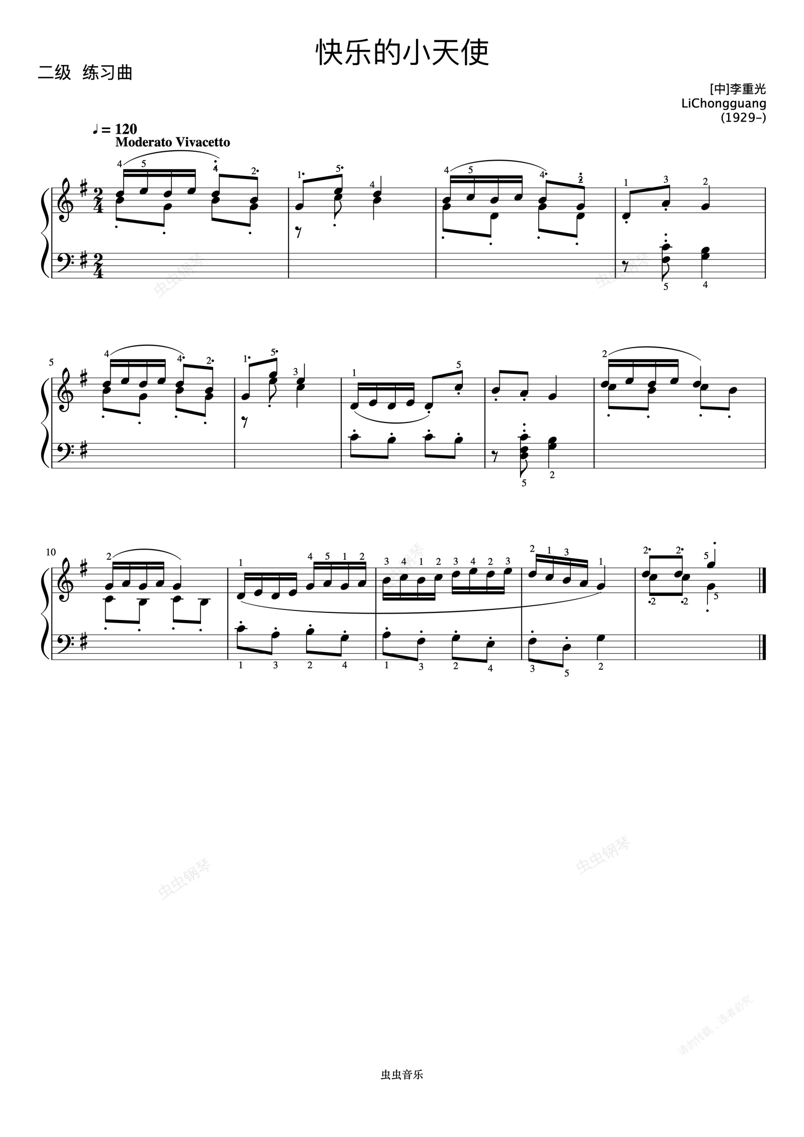 钢琴谱: 快乐的小天使《 ZYY 钢琴考级曲目 1》