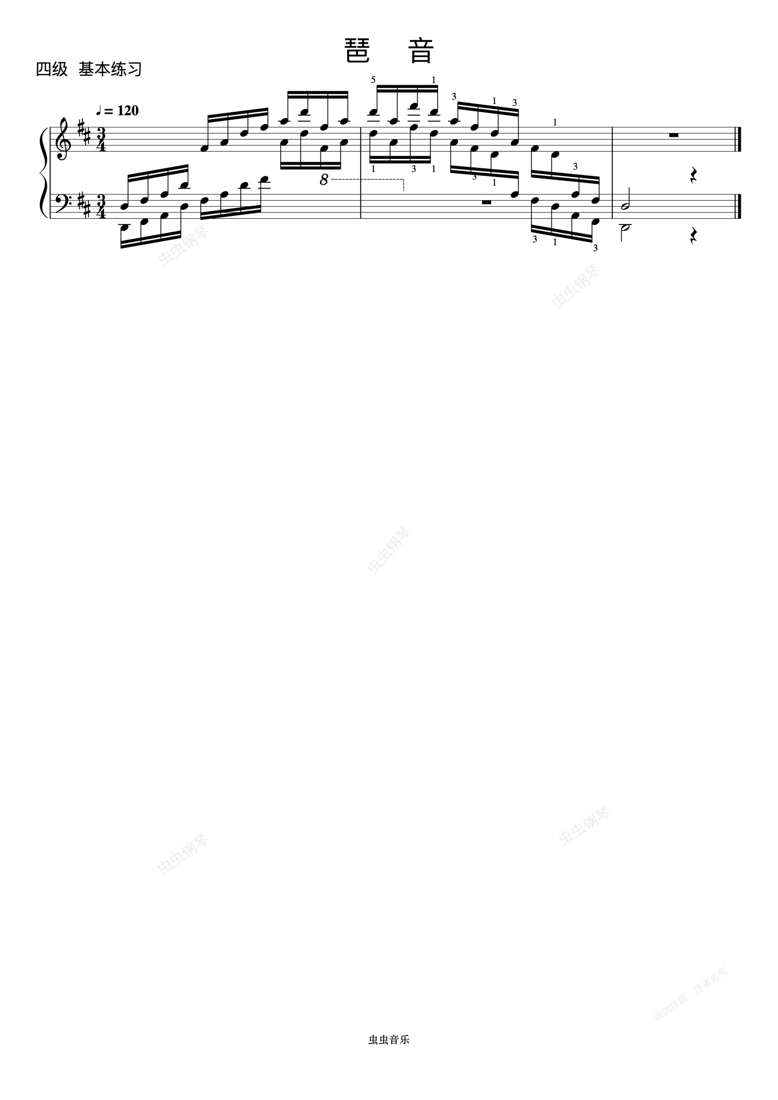 钢琴谱: D大调主三和弦琶音《 ZYY 钢琴考级曲目 1》