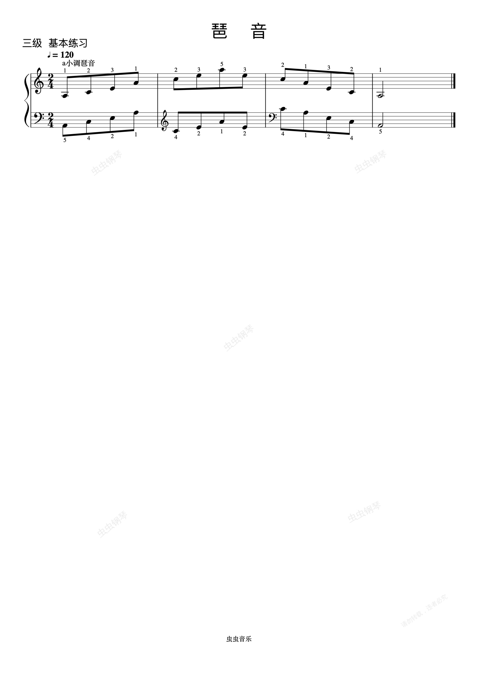 钢琴谱: a小调琶音《 ZYY 钢琴考级曲目 1》