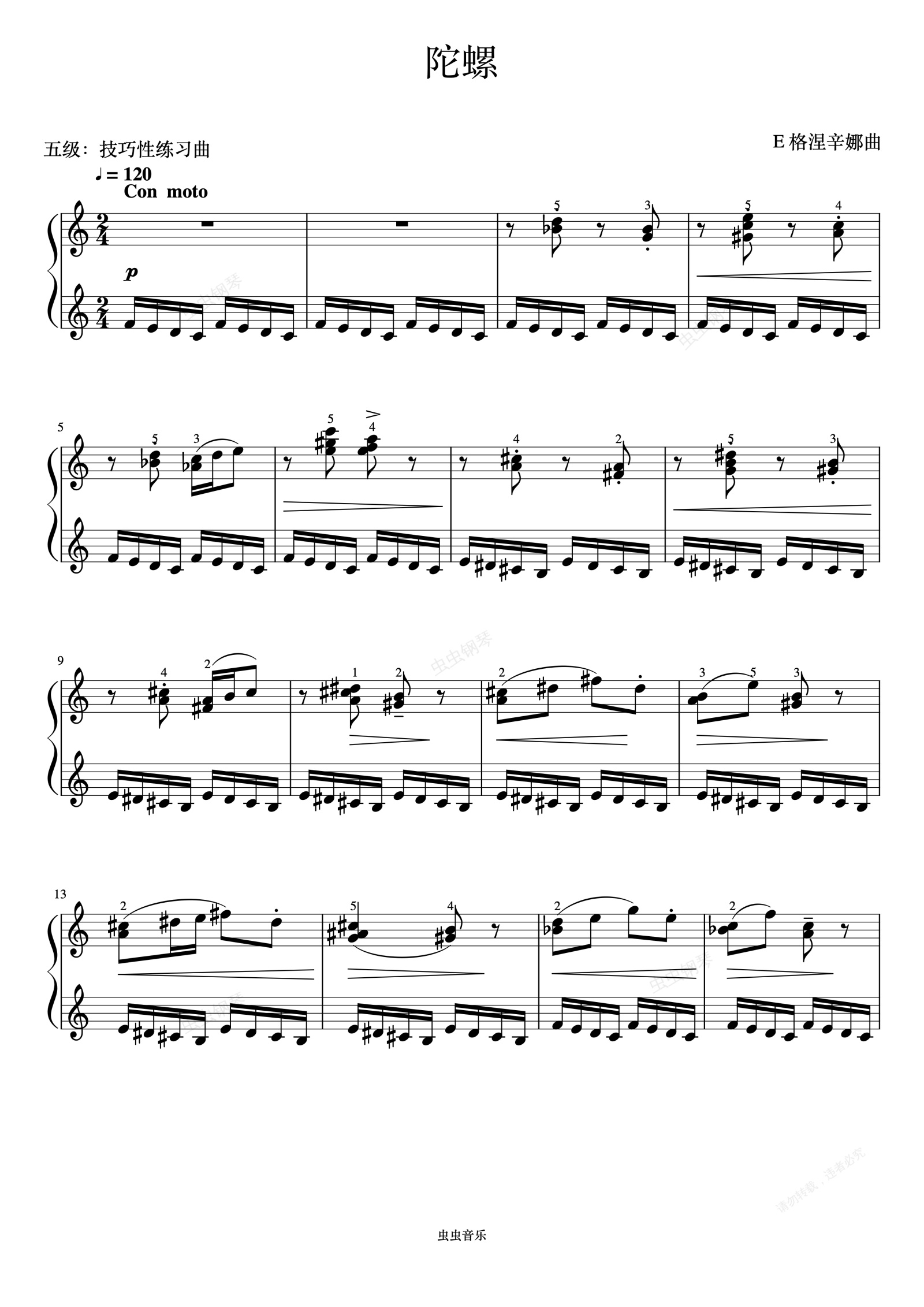 钢琴谱: 陀螺《 ZYY 钢琴考级曲目 1》