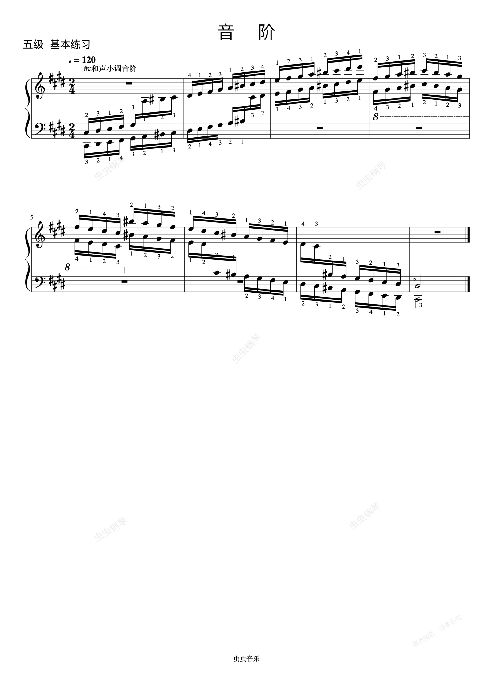钢琴谱:《 ZYY 钢琴考级曲目 1》 #c和声小调音阶