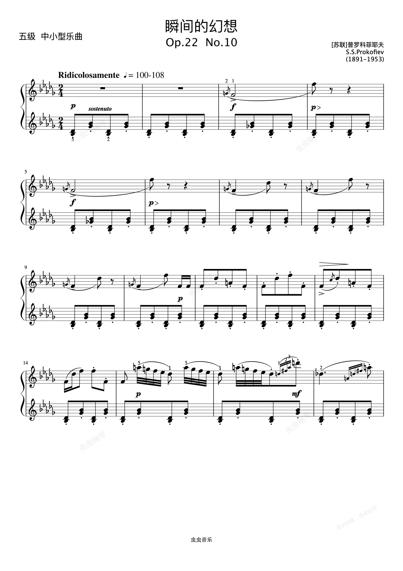 钢琴谱: 瞬息的幻想 Op.22 No.10《 ZYY 钢琴考级曲目 1》