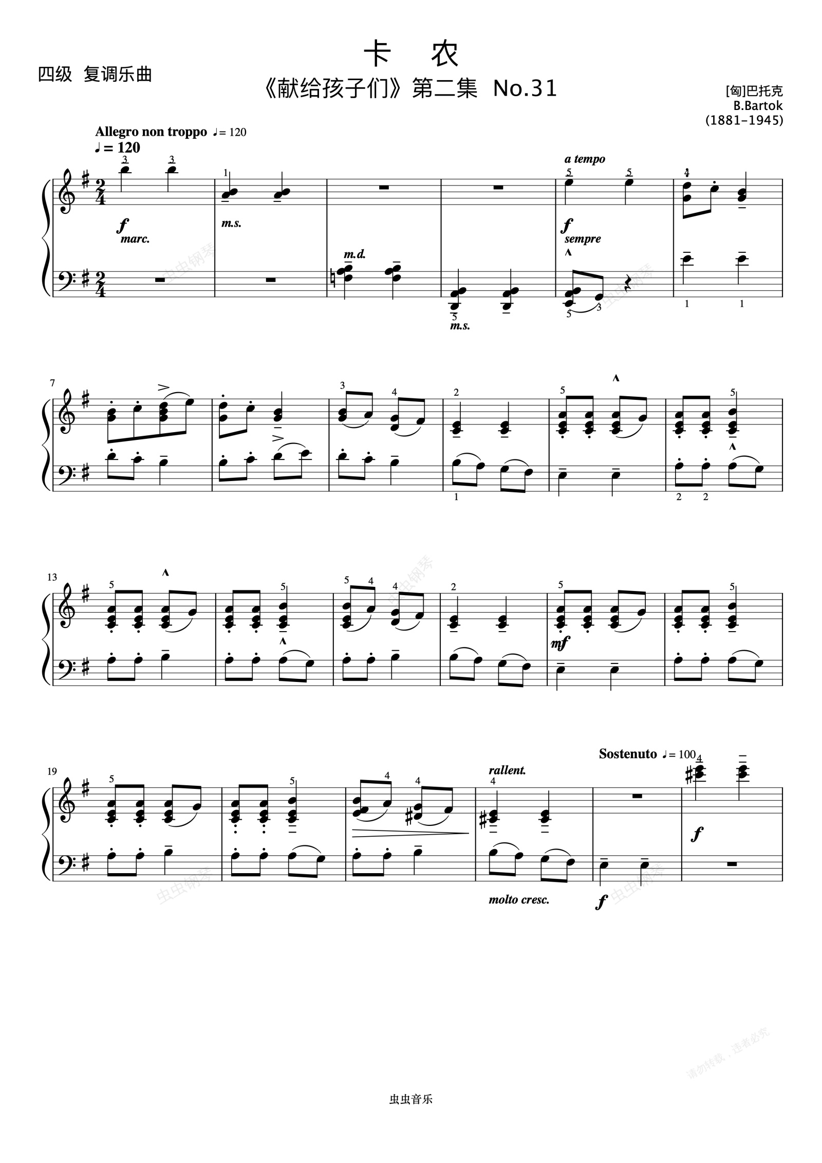 钢琴谱: 卡农《 ZYY 钢琴考级曲目 1》