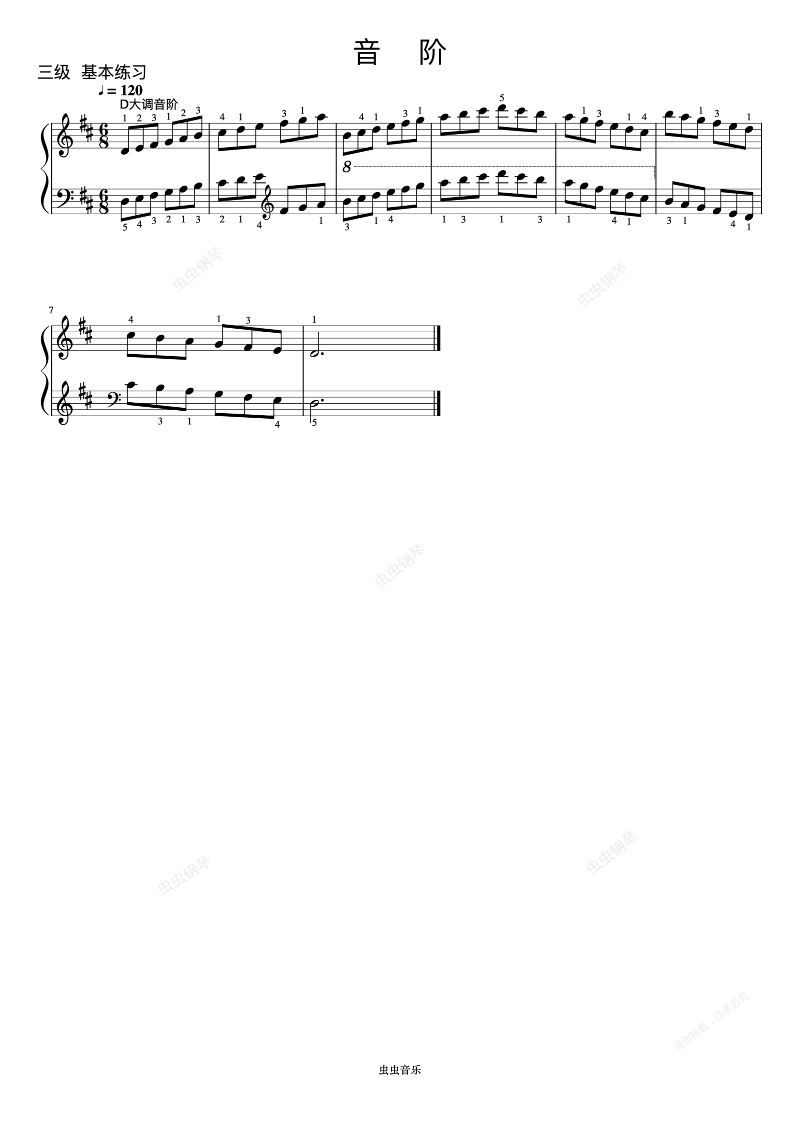 钢琴谱: D大调音阶《 ZYY 钢琴考级曲目 1》