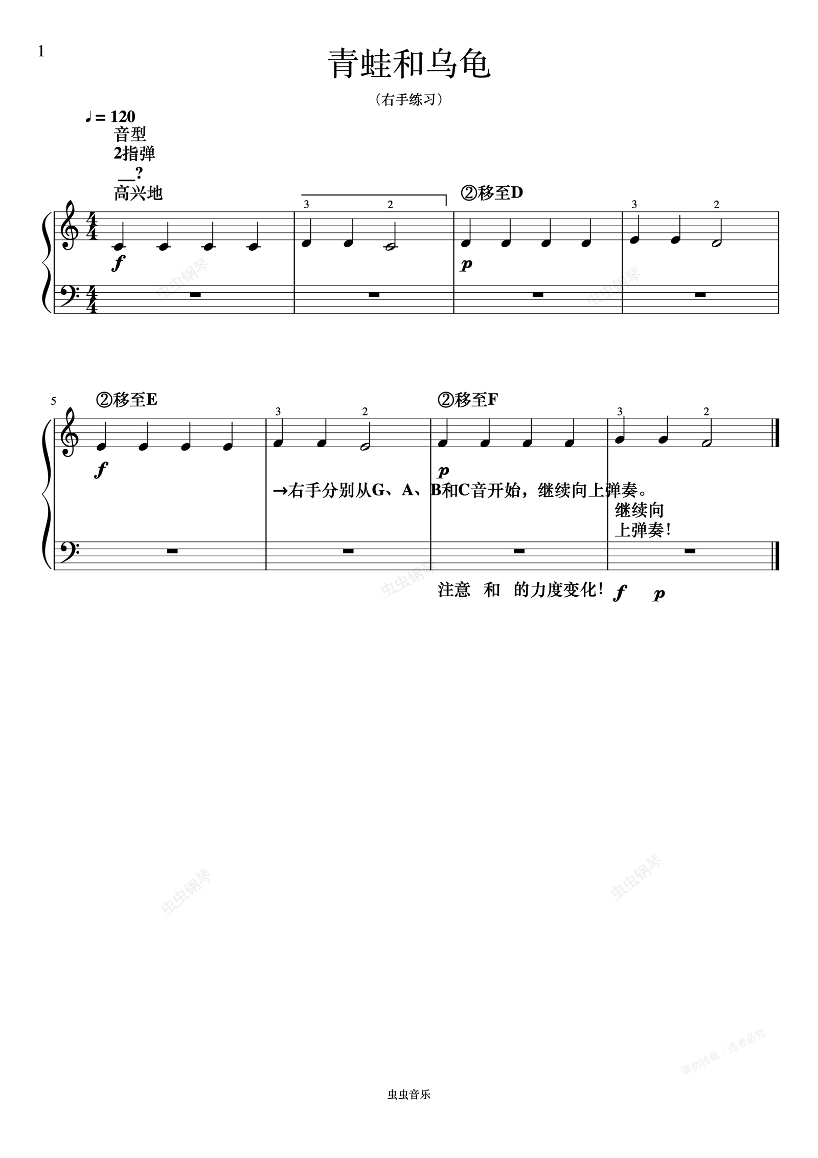 钢琴谱:青蛙和乌龟《FBE 技巧和演奏》