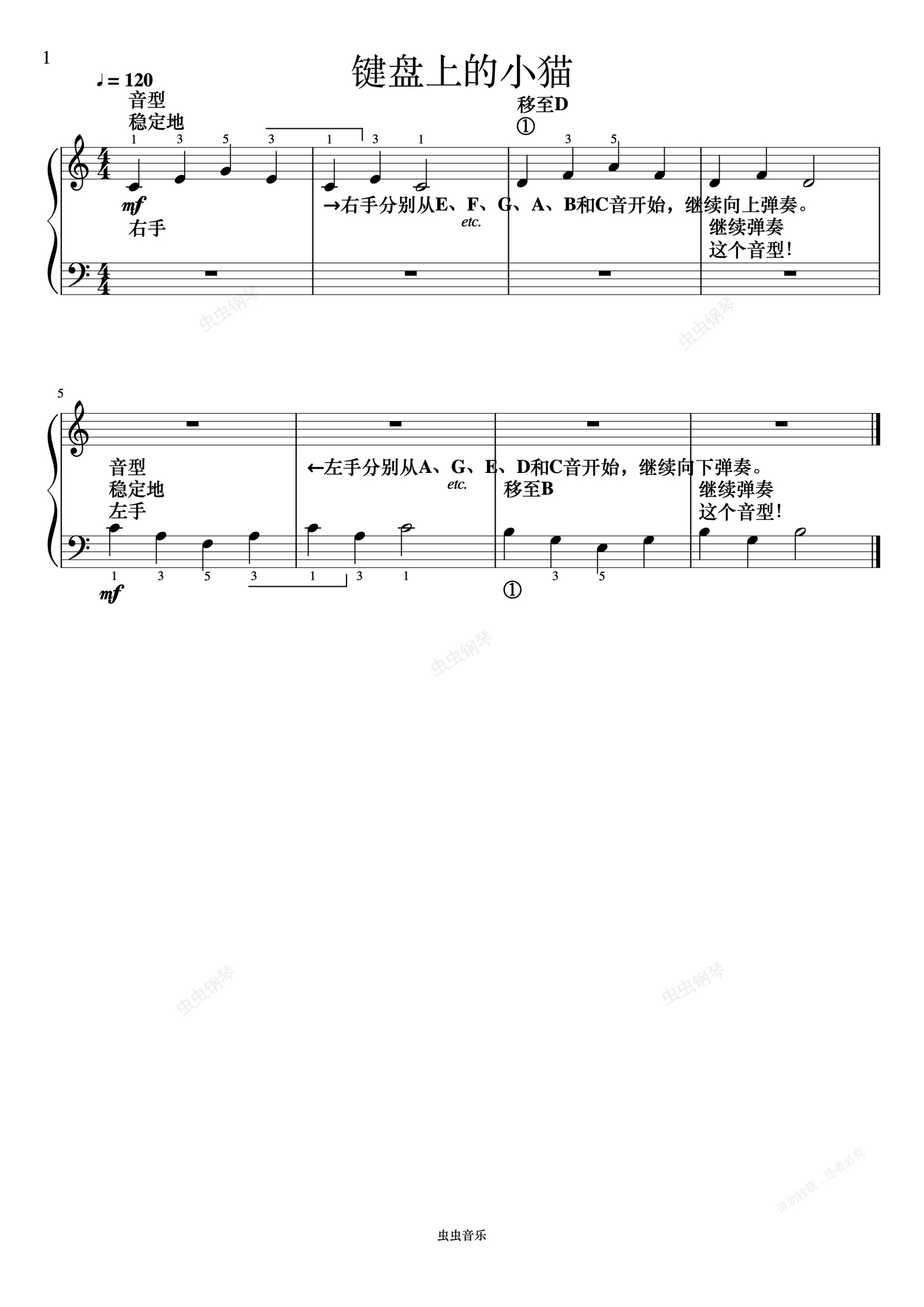 钢琴谱:键盘上的小猫《FBE 技巧和演奏》