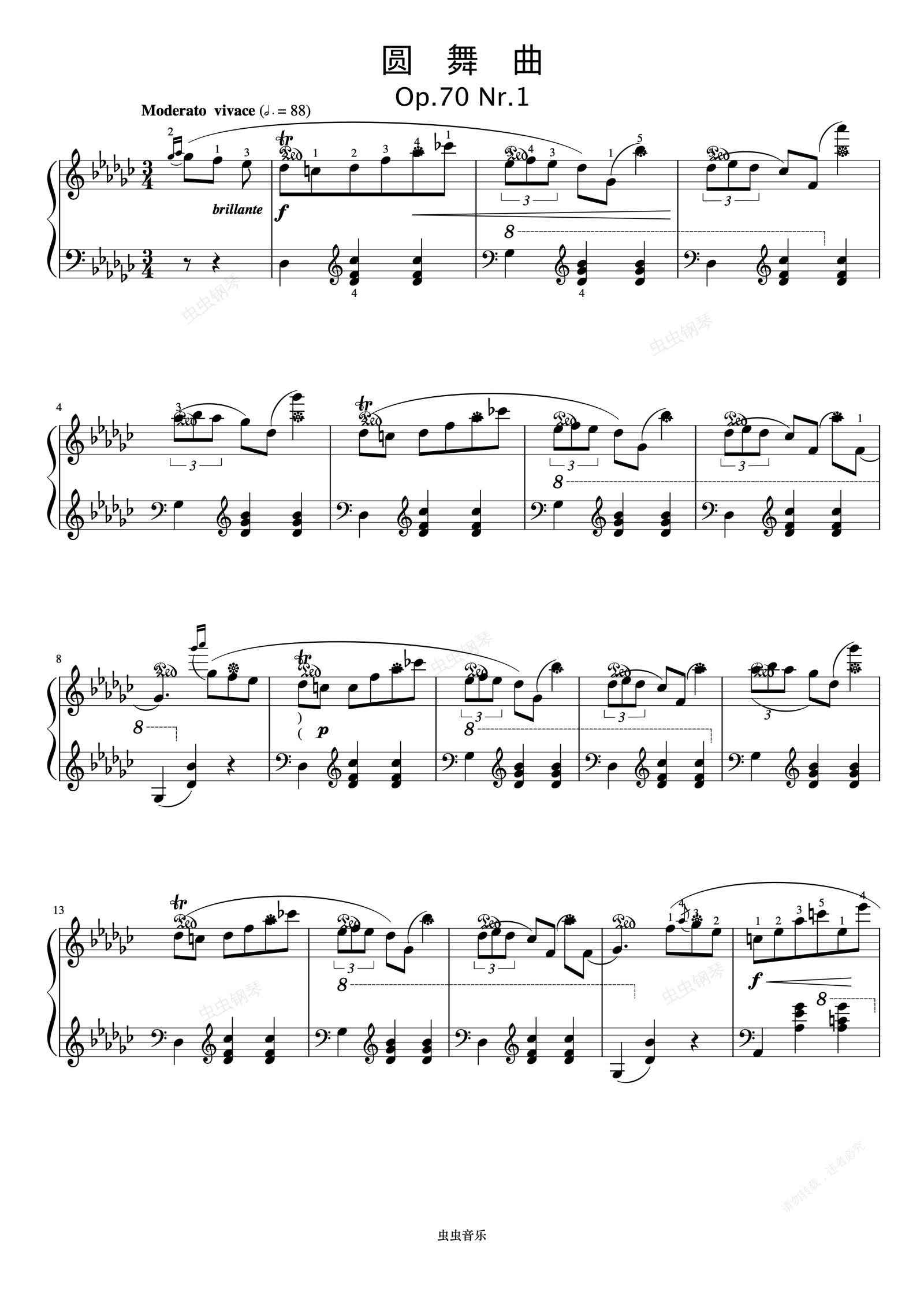 钢琴谱:圆舞曲 Op.70 No.1《肖邦圆舞曲集》
