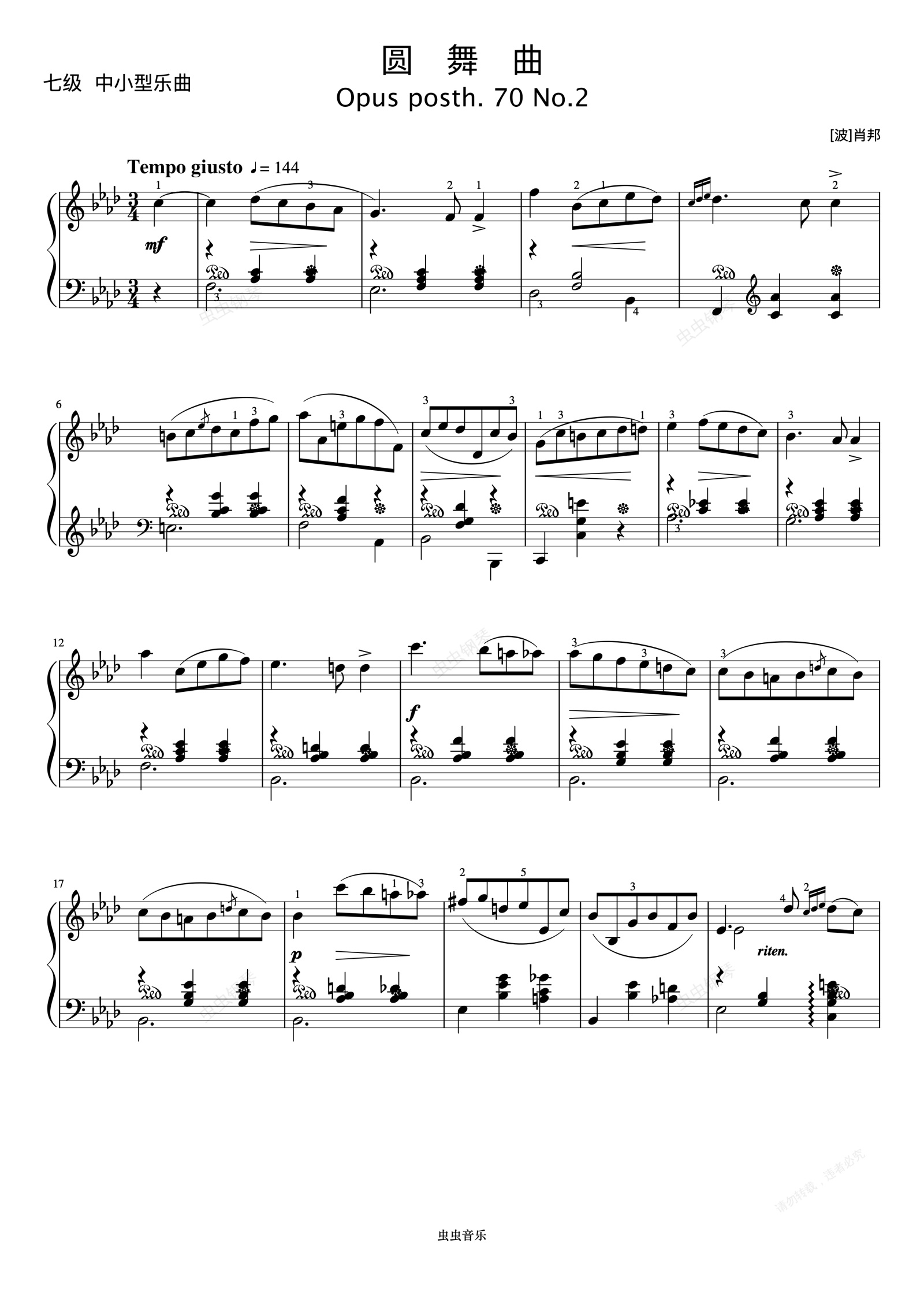 钢琴谱:圆舞曲Op.70 No.2《肖邦圆舞曲集》