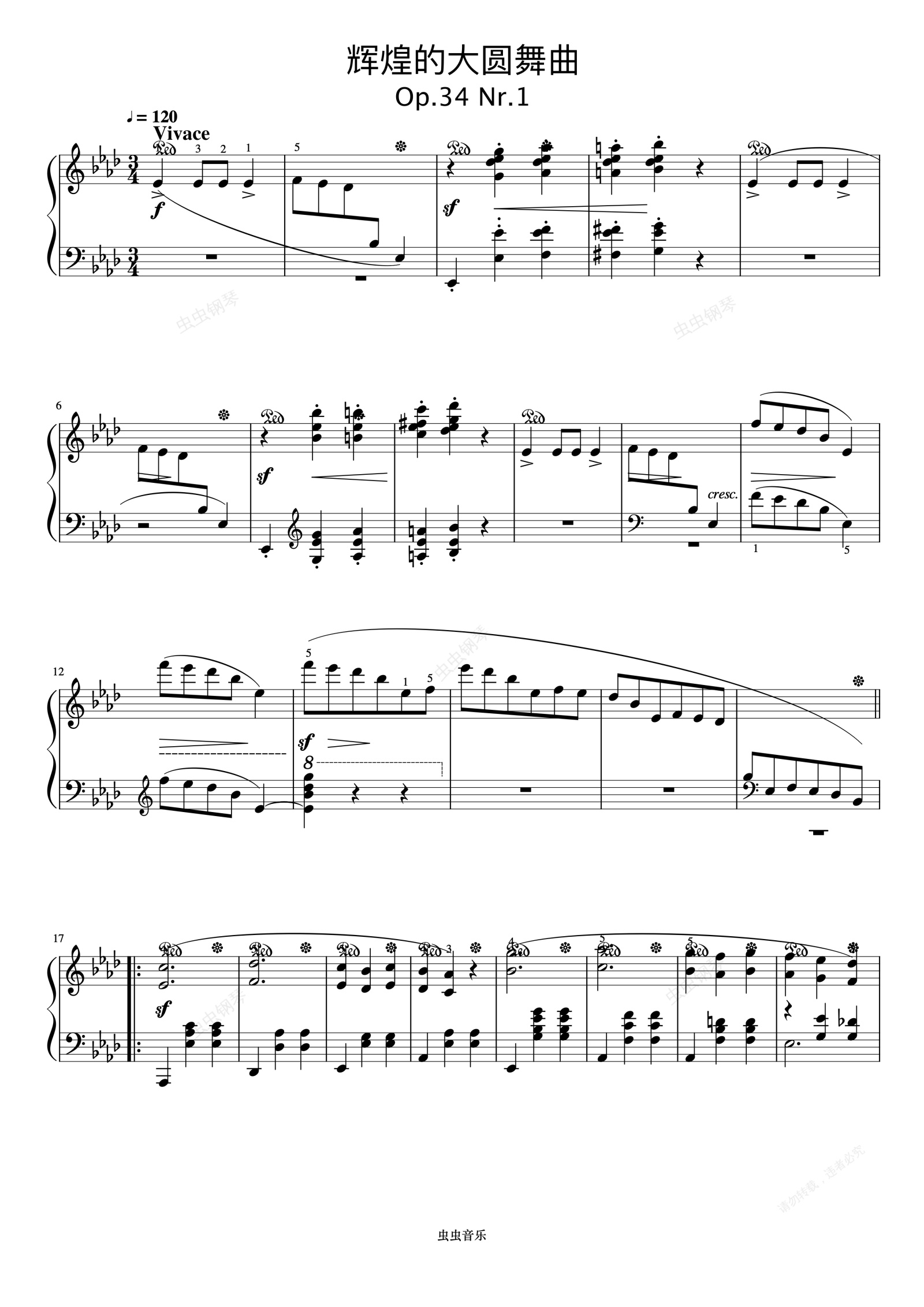 钢琴谱:圆舞曲 Op.34 No.1《肖邦圆舞曲集》