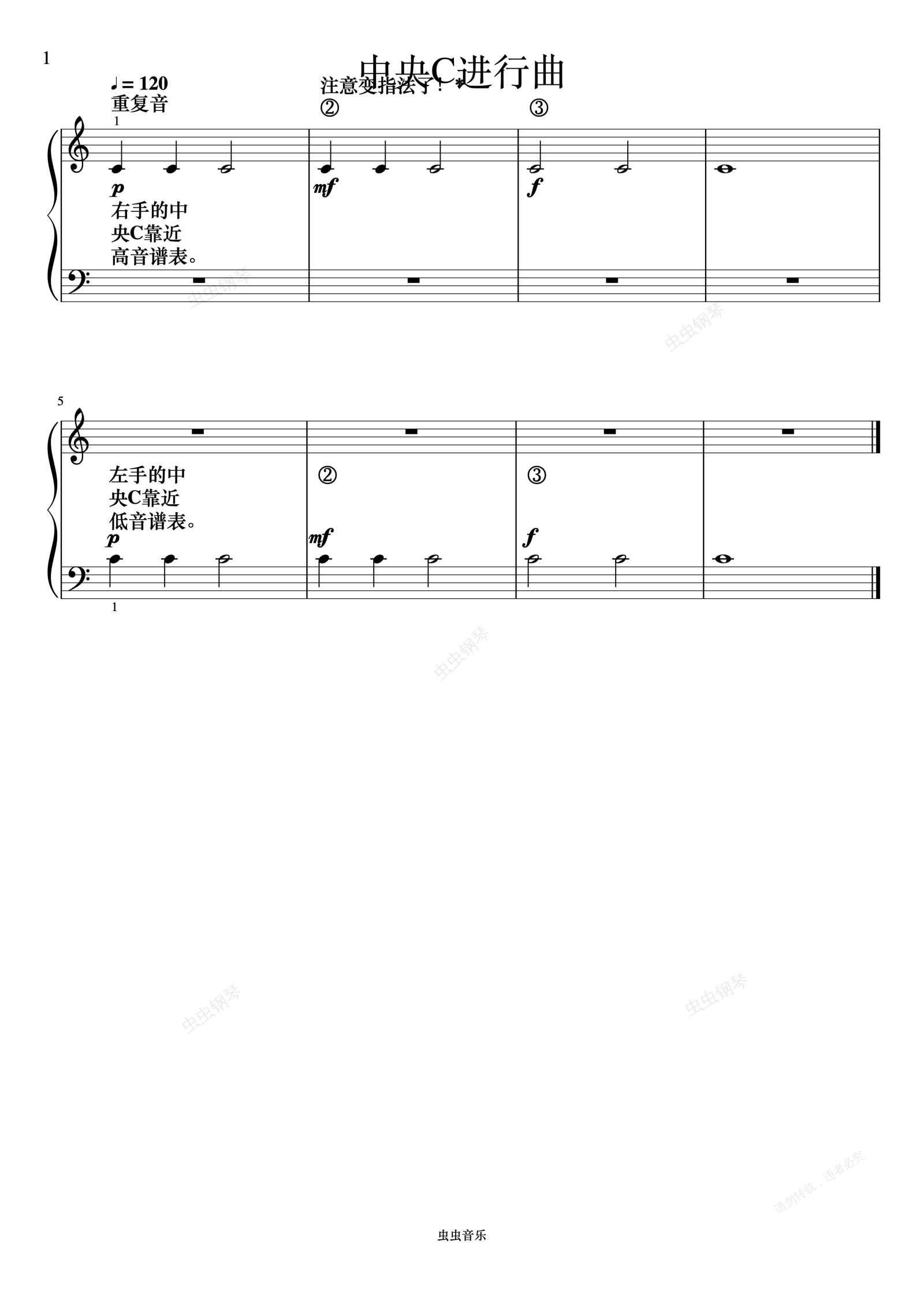 钢琴谱:中央C进行曲《FBE 课程和乐理》