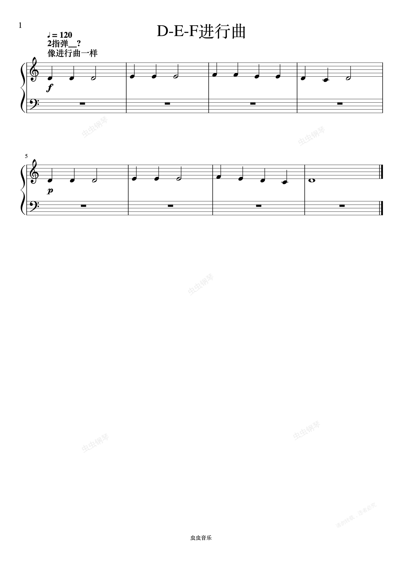 钢琴谱:D-E-F进行曲《FBE 课程和乐理》
