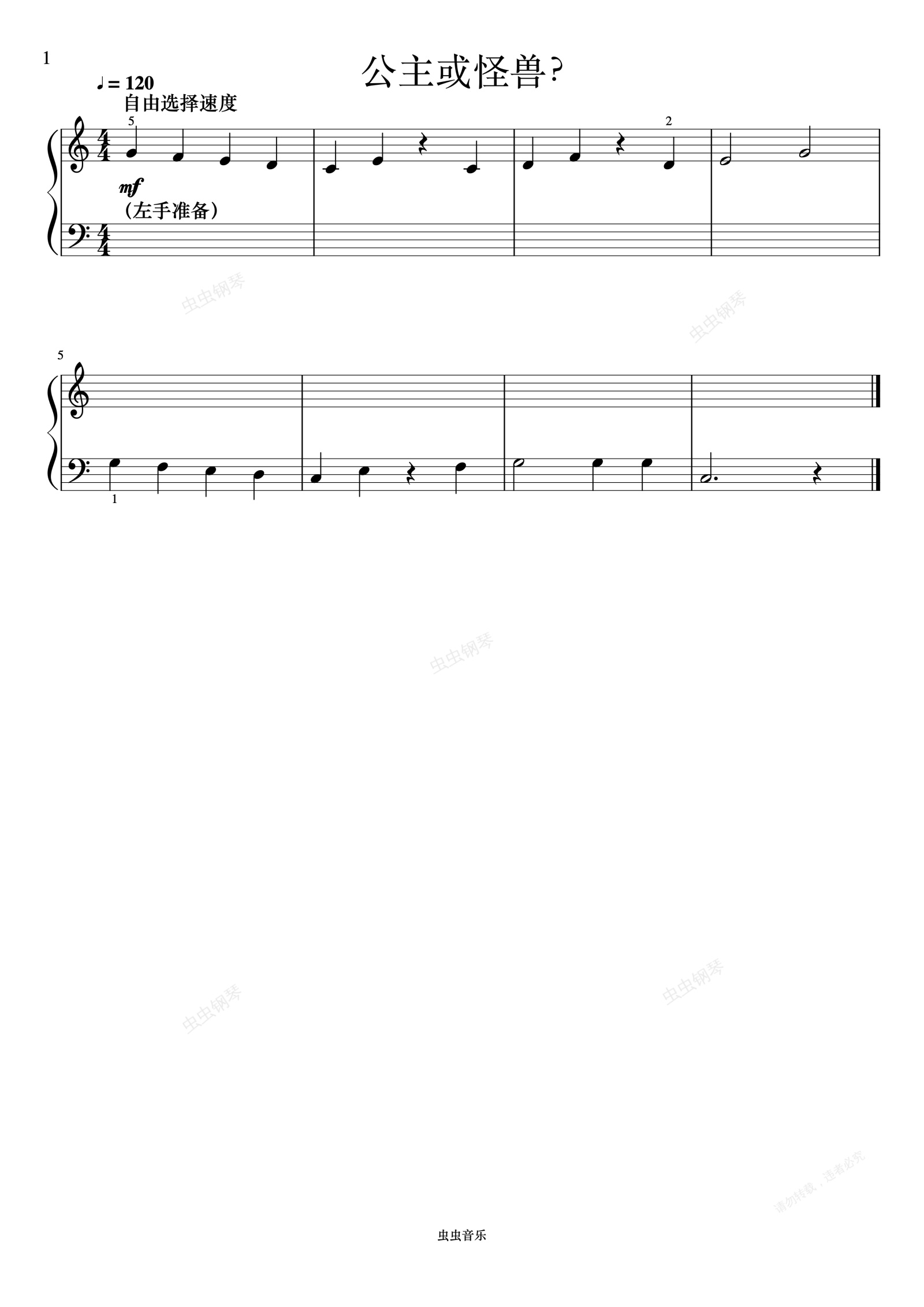 钢琴谱:公主或怪兽?《FBE 课程和乐理》