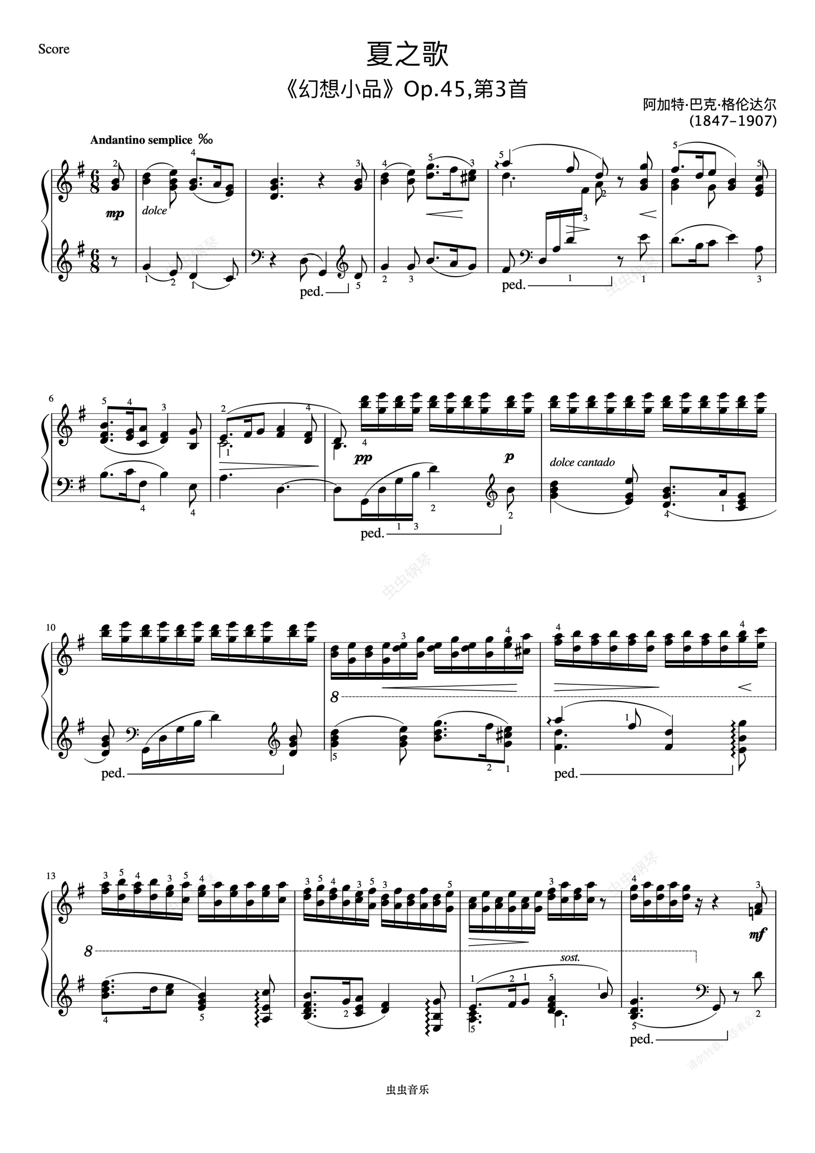 钢琴谱:7级 夏之歌《英皇钢琴考级曲目(2017-2018)》