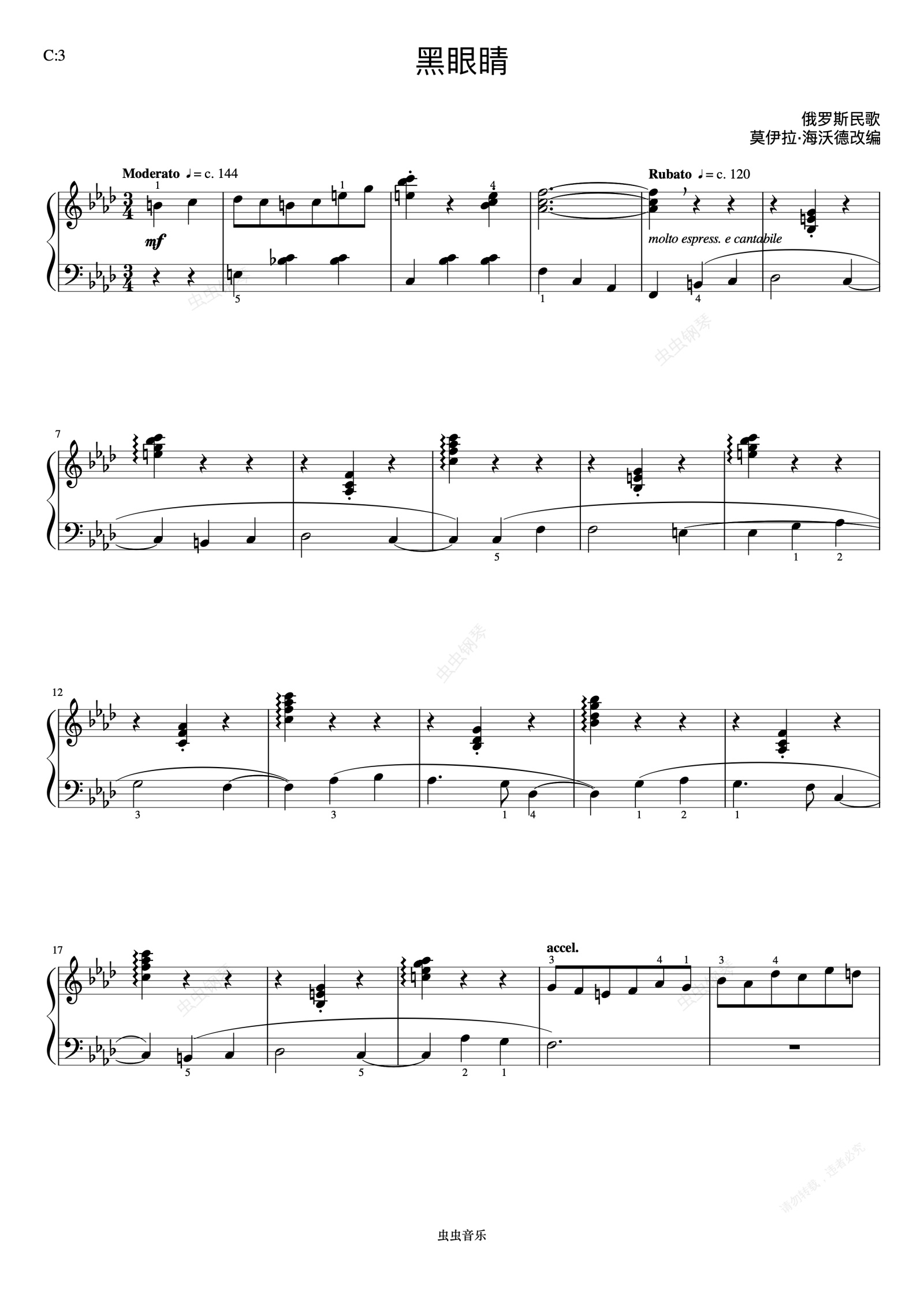钢琴谱:4级 黑眼睛《英皇钢琴考级曲目(2017-2018)》