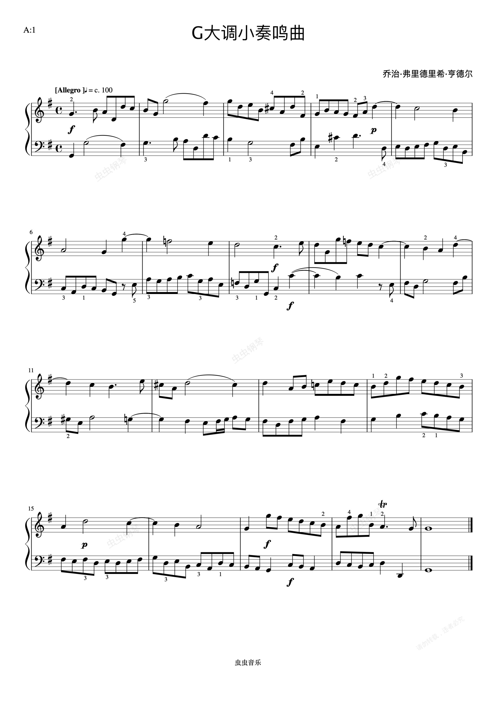 钢琴谱:3级 G大调小奏鸣曲《英皇钢琴考级曲目(2017-2018)》