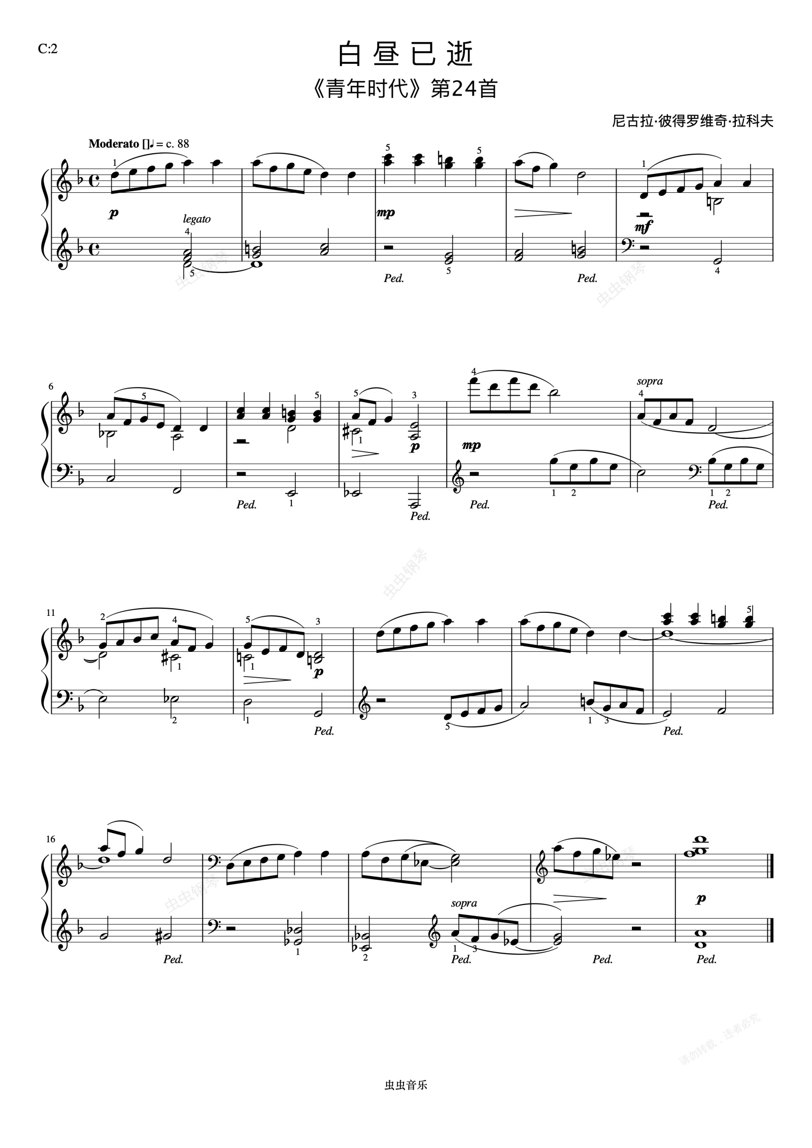 钢琴谱:3级 白昼已逝《英皇钢琴考级曲目(2017-2018)》
