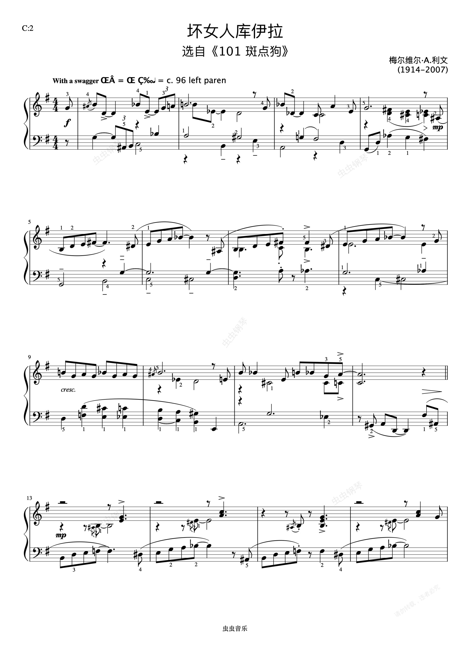 钢琴谱:6级 坏女人库伊拉《英皇钢琴考级曲目(2017-2018)》