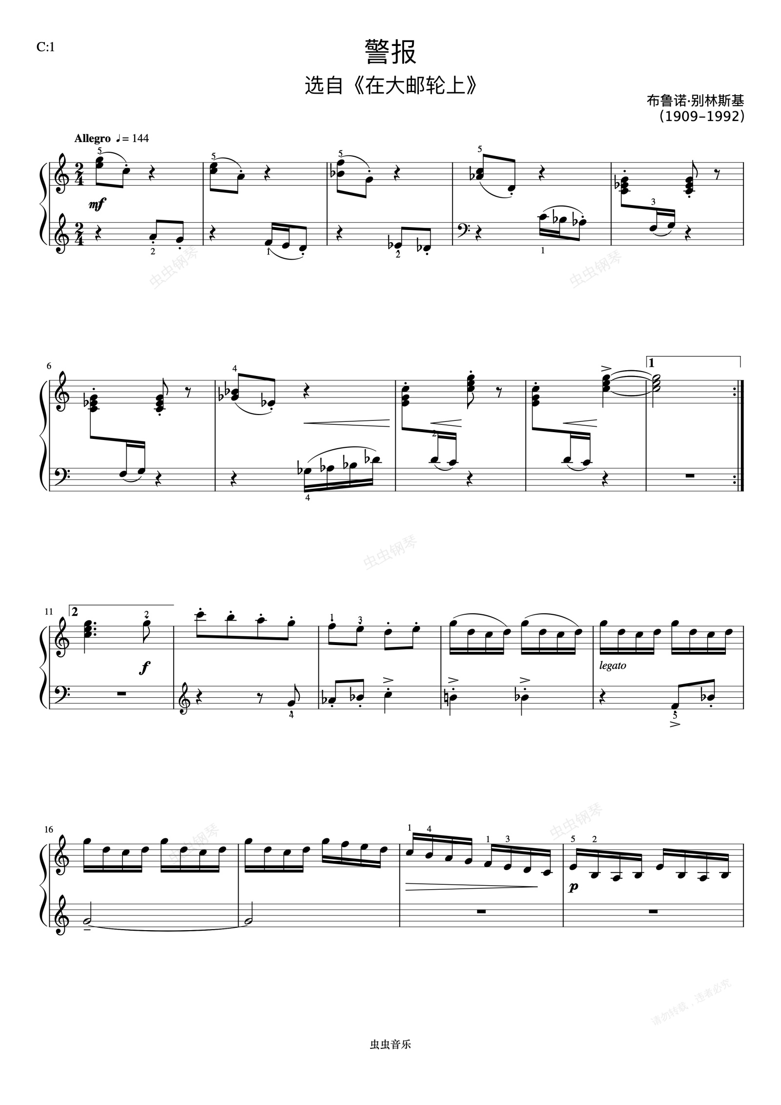 钢琴谱:4级 警报《英皇钢琴考级曲目(2017-2018)》