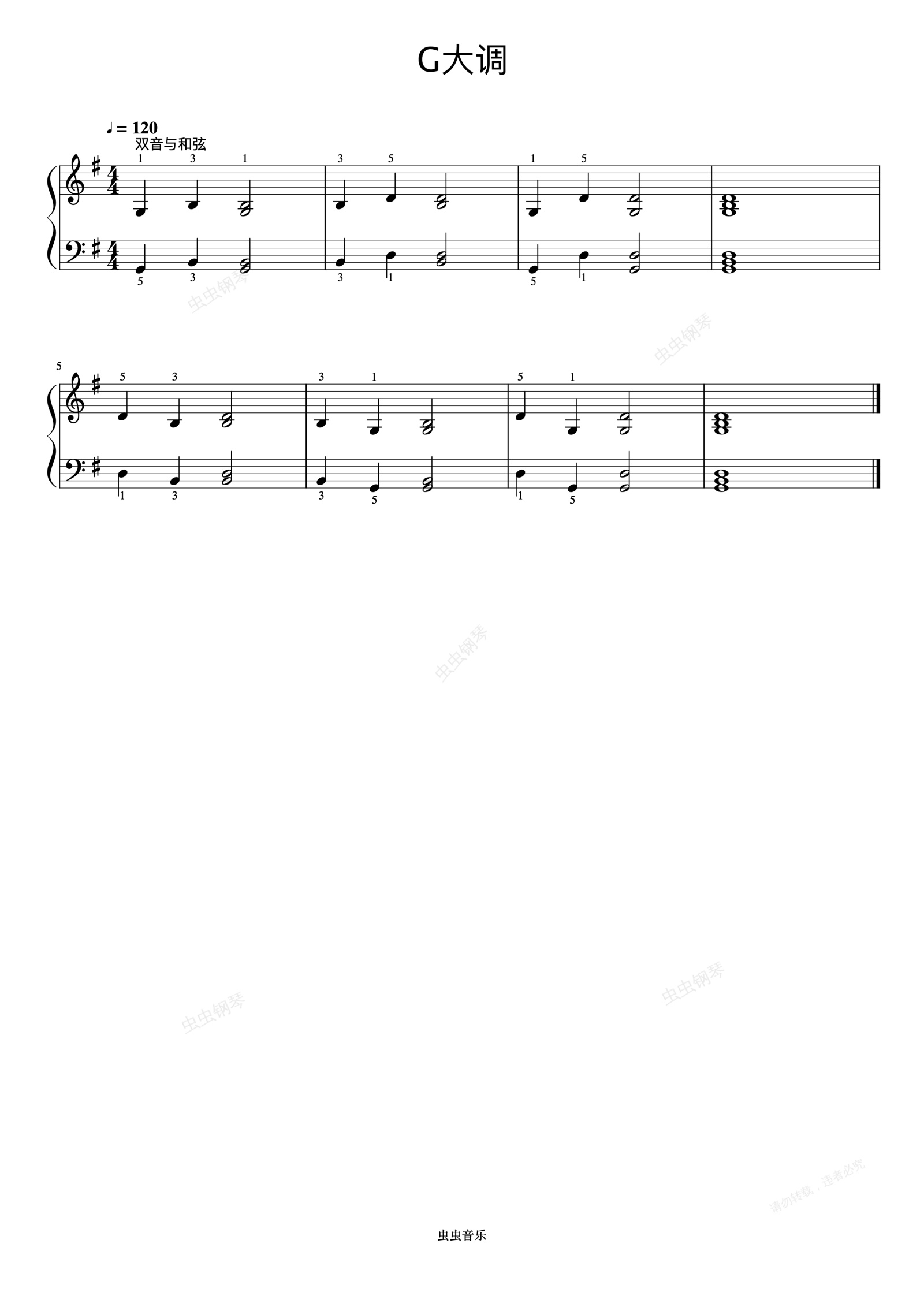 钢琴谱:G大调 双音与和弦《手指训练操》