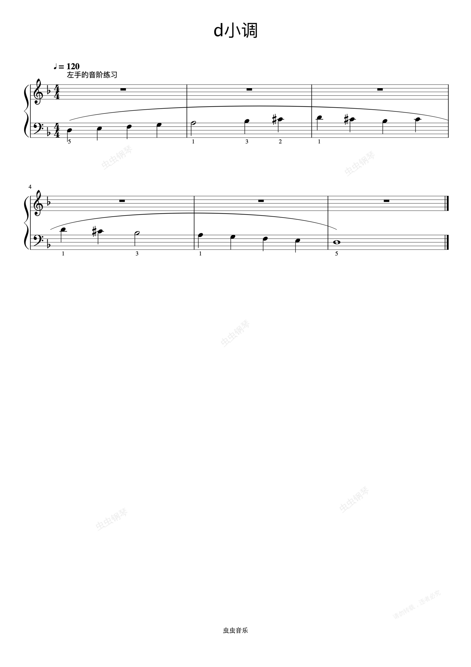 钢琴谱:d小调 左手的音阶练习《手指训练操》