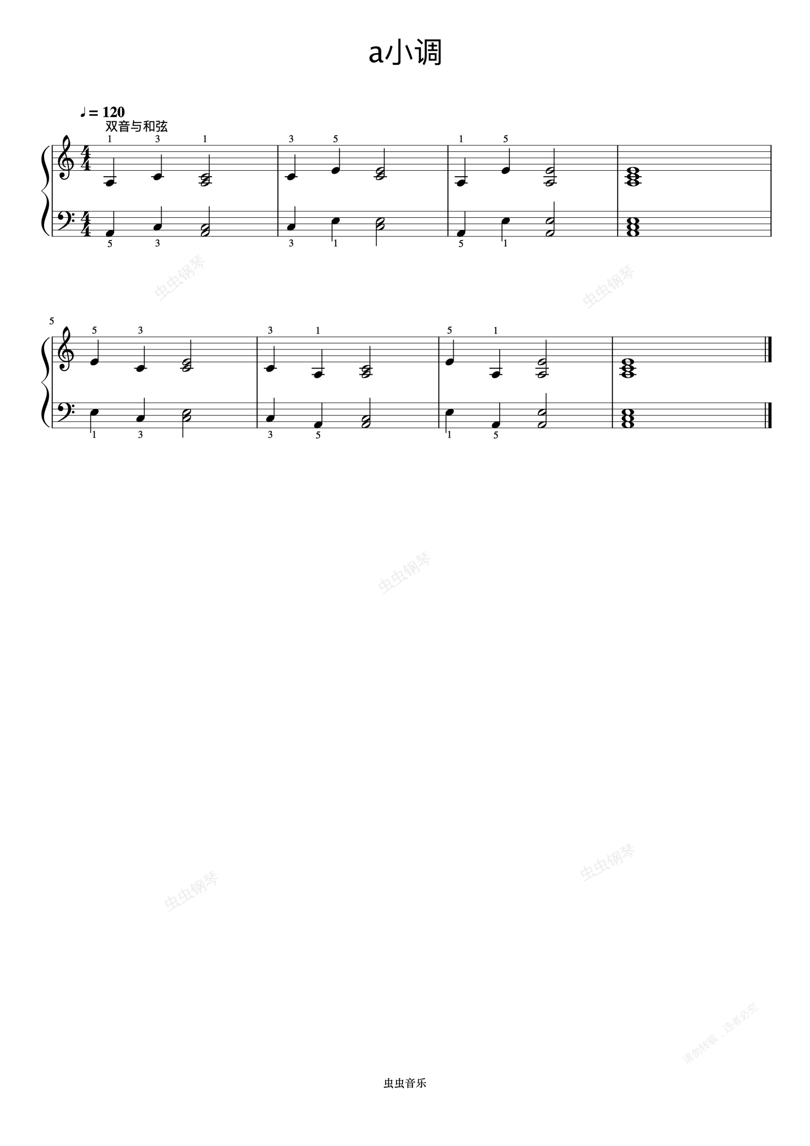 钢琴谱:a小调 双音与和弦《手指训练操》