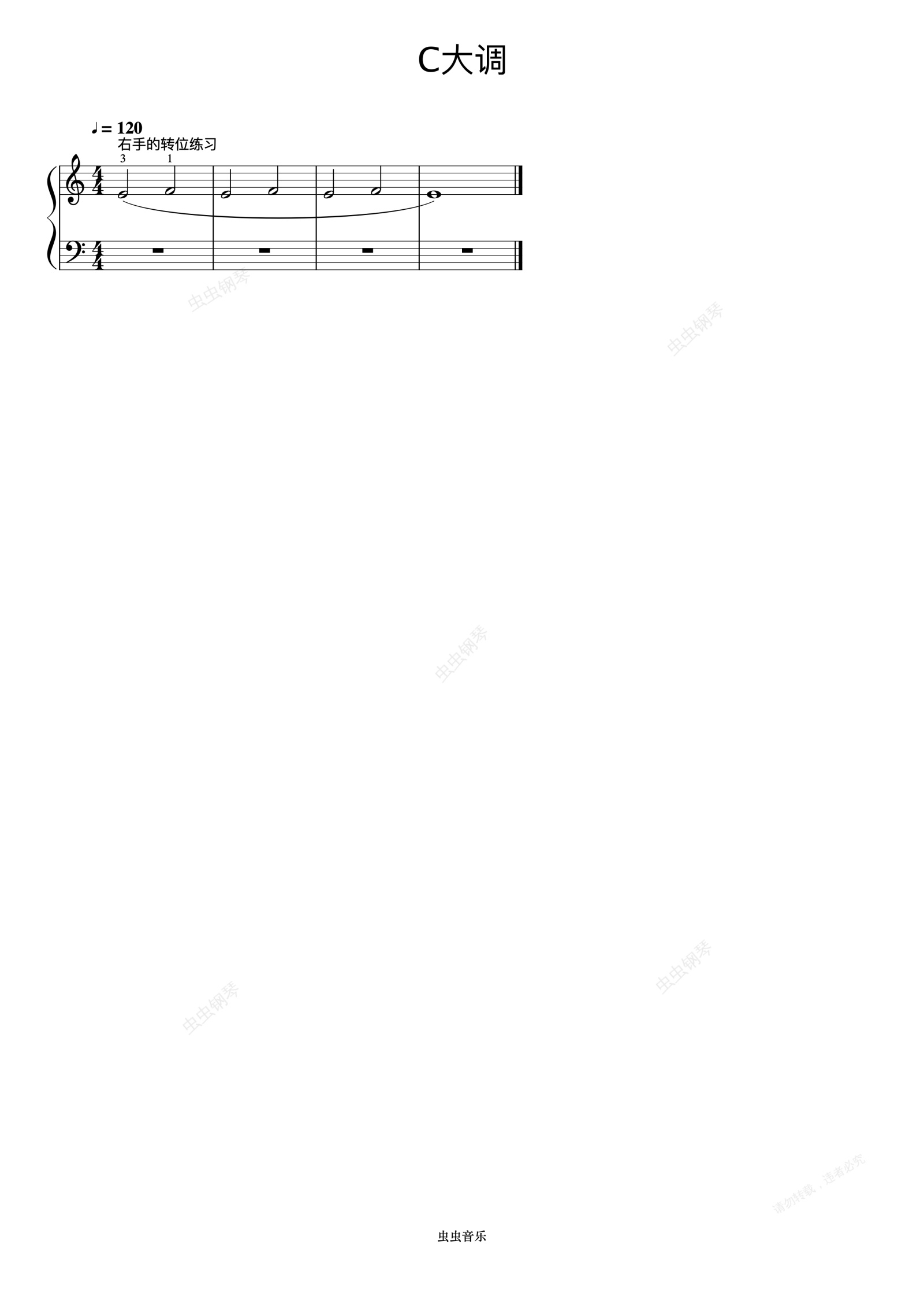 钢琴谱:C大调 右手的转位练习《手指训练操》