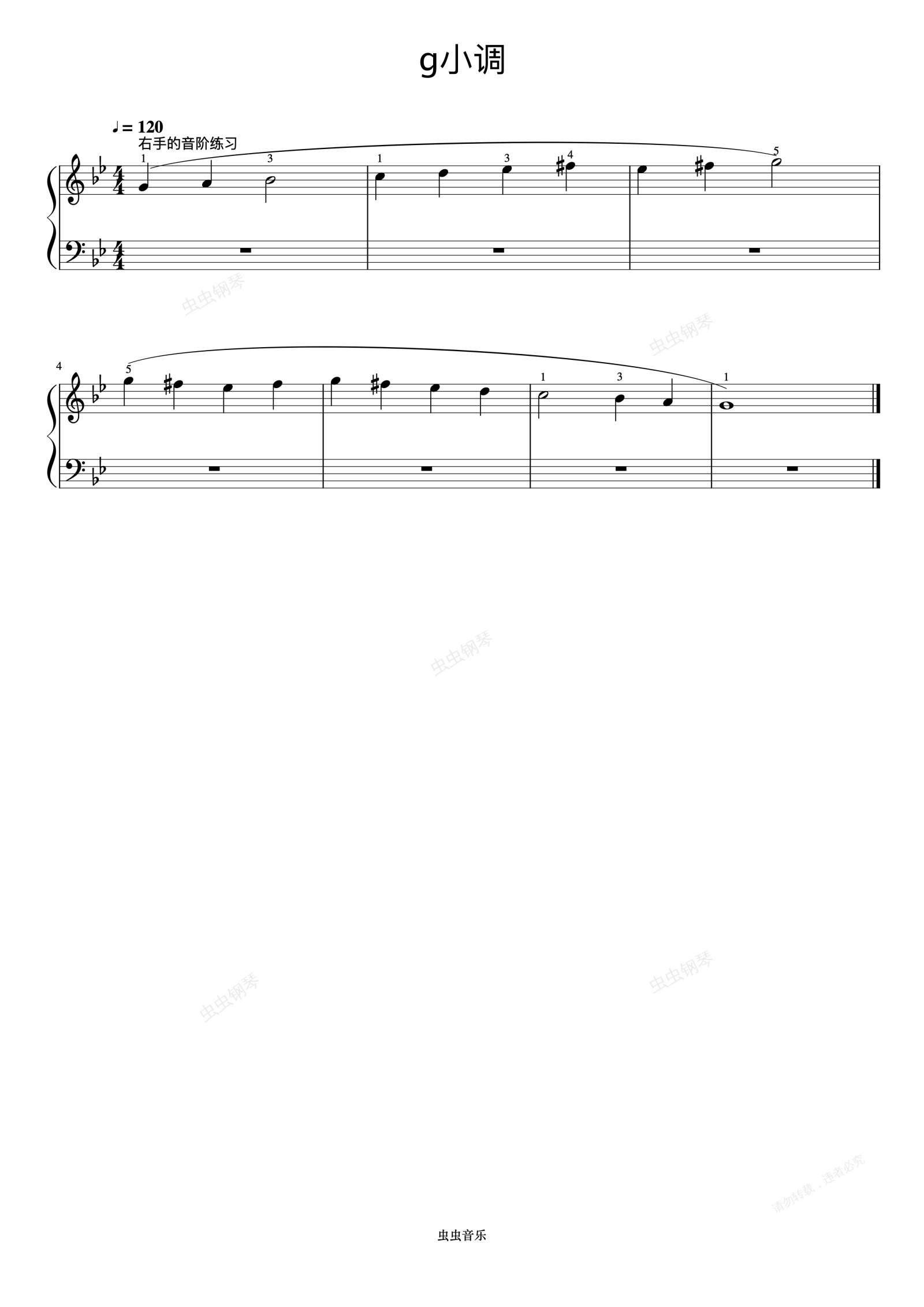 钢琴谱:g小调 右手的音阶练习《手指训练操》