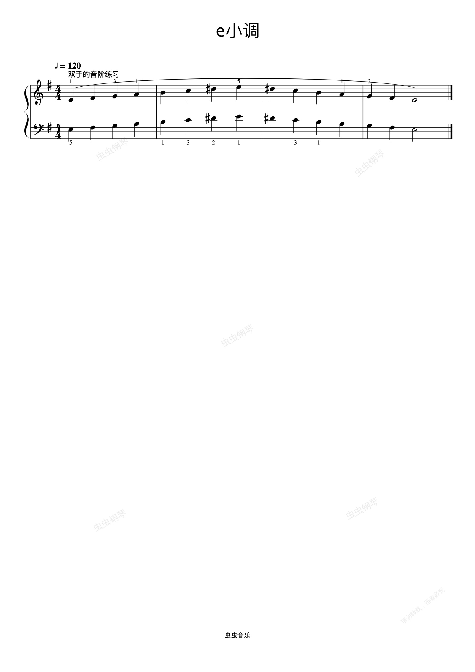 钢琴谱:e小调 双手的音阶练习《手指训练操》