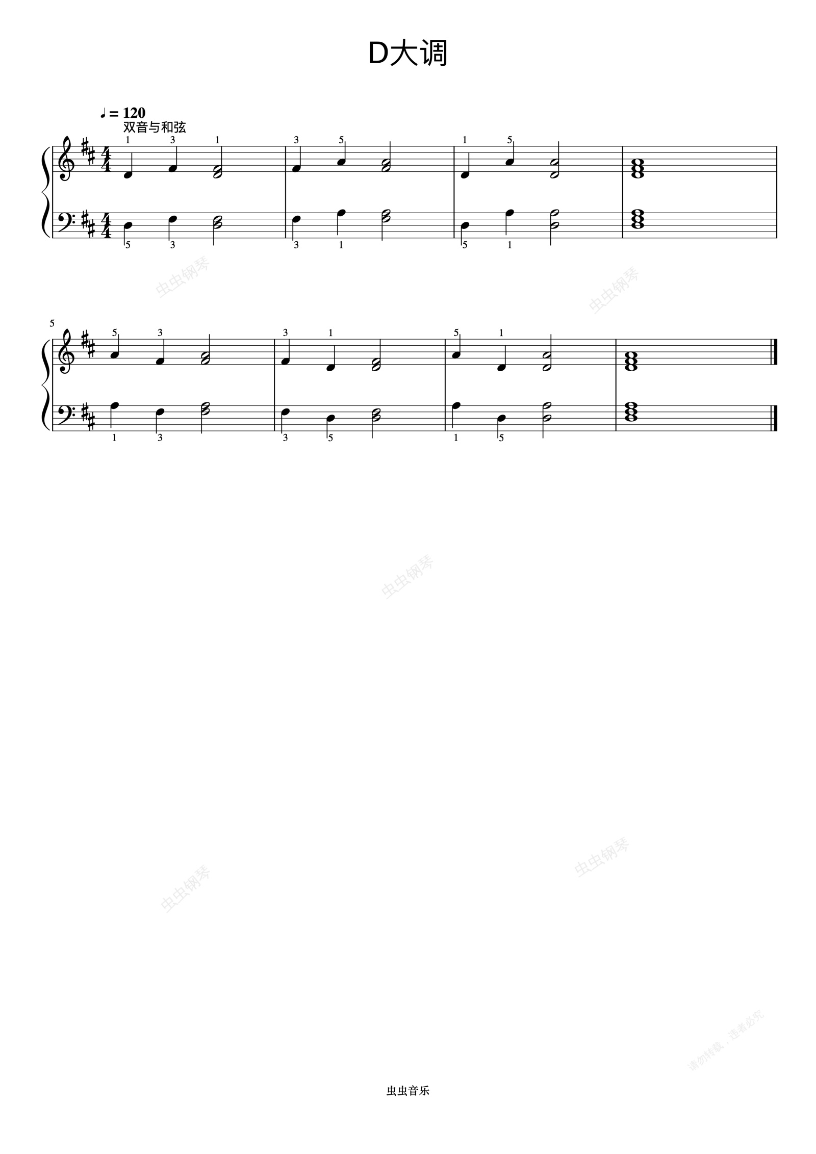 钢琴谱:D大调 双音与和弦《手指训练操》