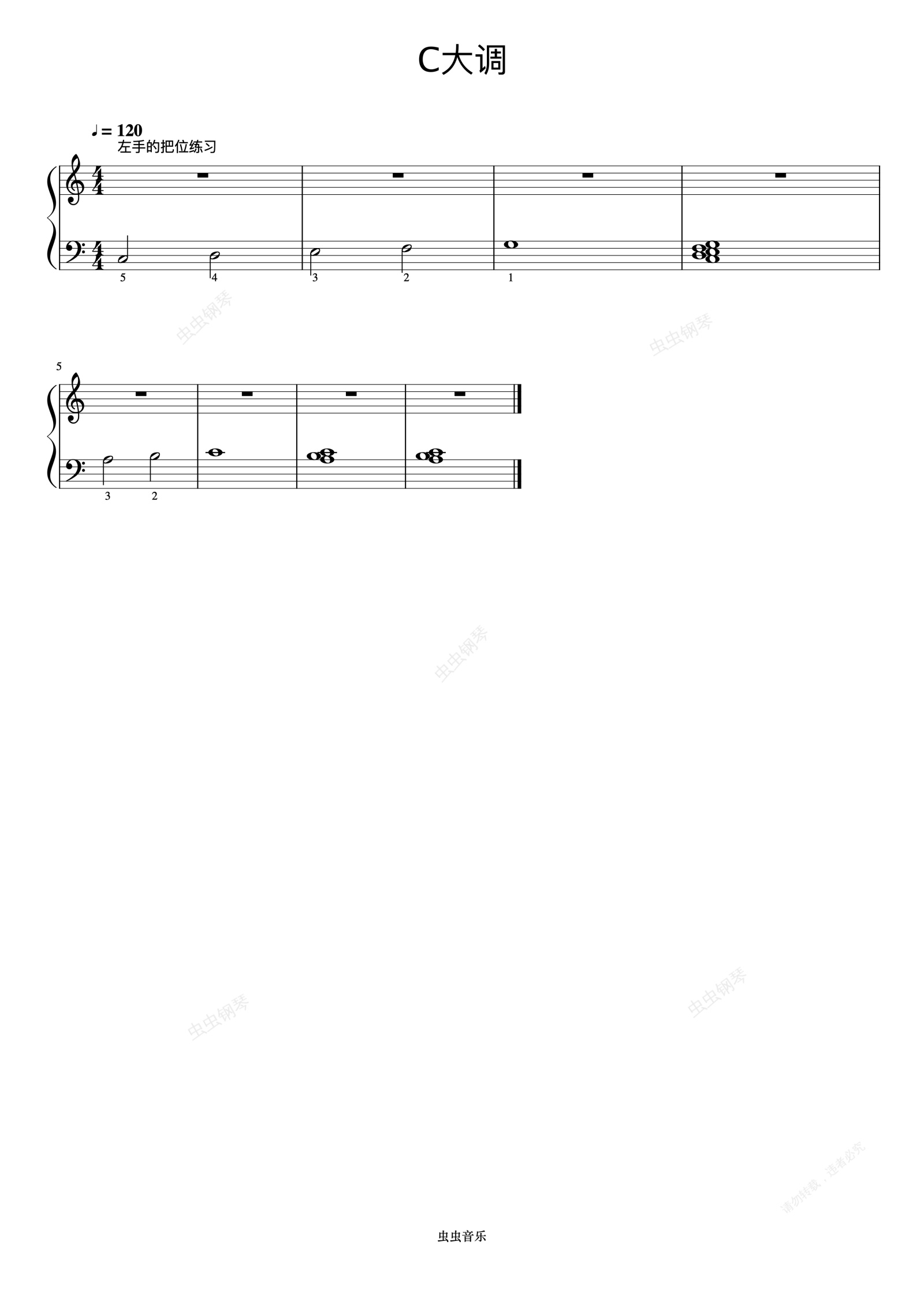 钢琴谱:C大调 左手的把位练习《手指训练操》