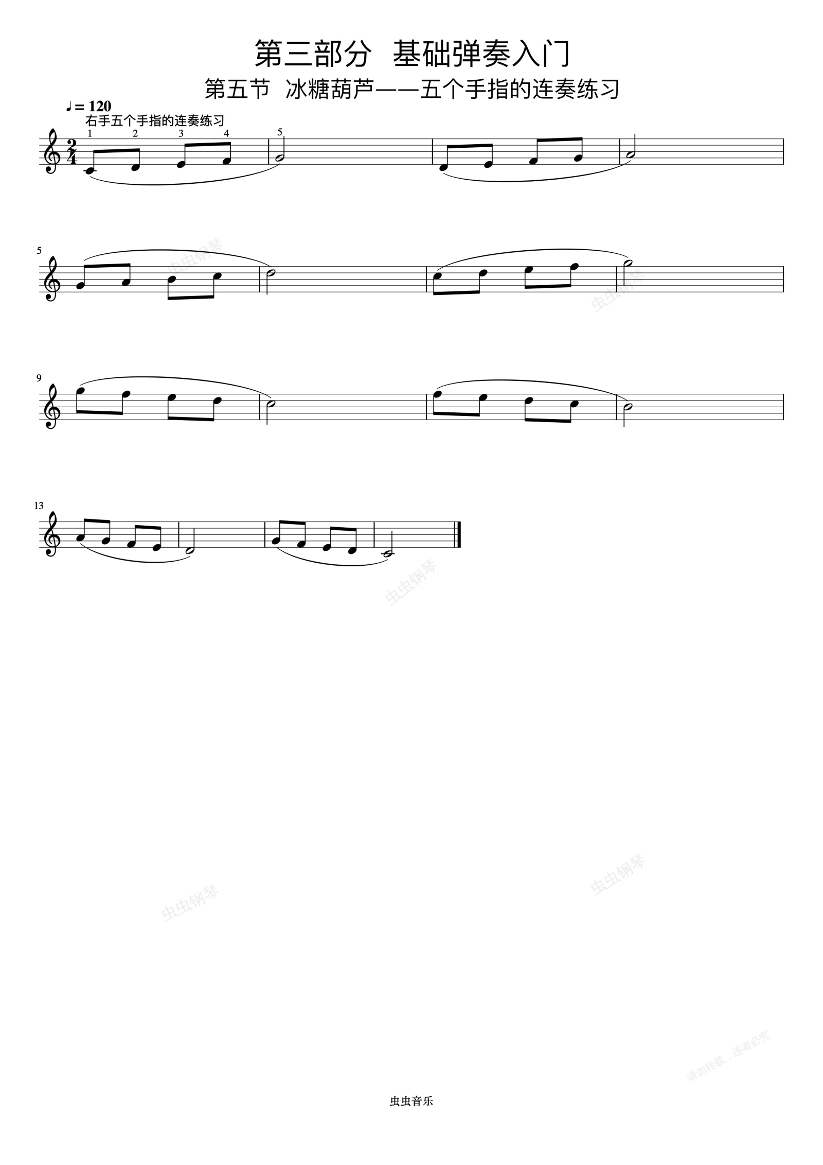 钢琴谱:右手五个手指的连奏练习《手指训练操》