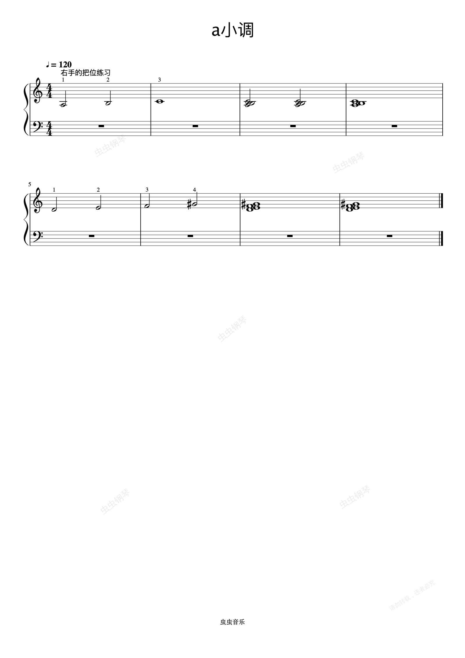 钢琴谱:a小调 右手的把位练习《手指训练操》