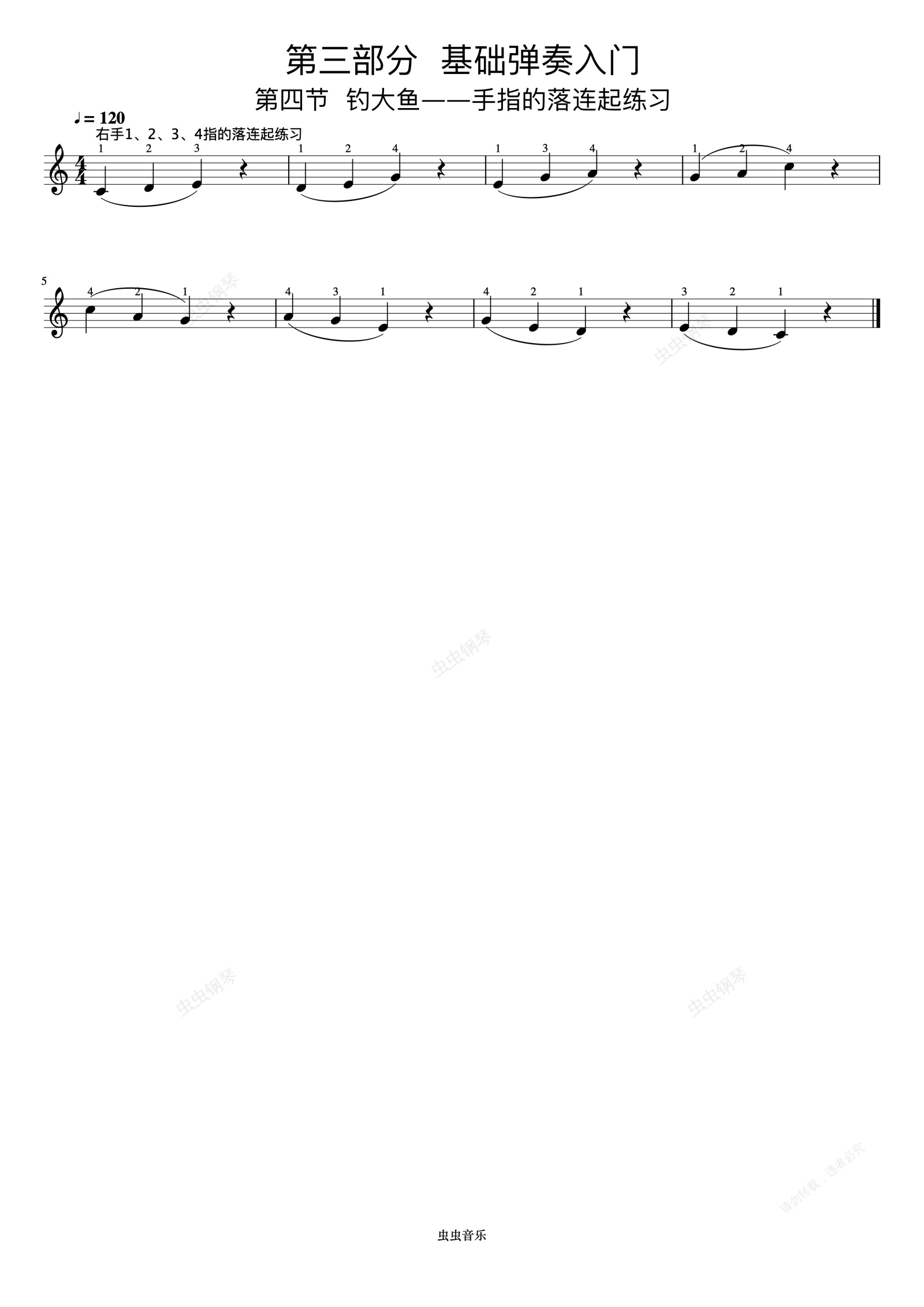 钢琴谱:右手1234指的落连起练习《手指训练操》