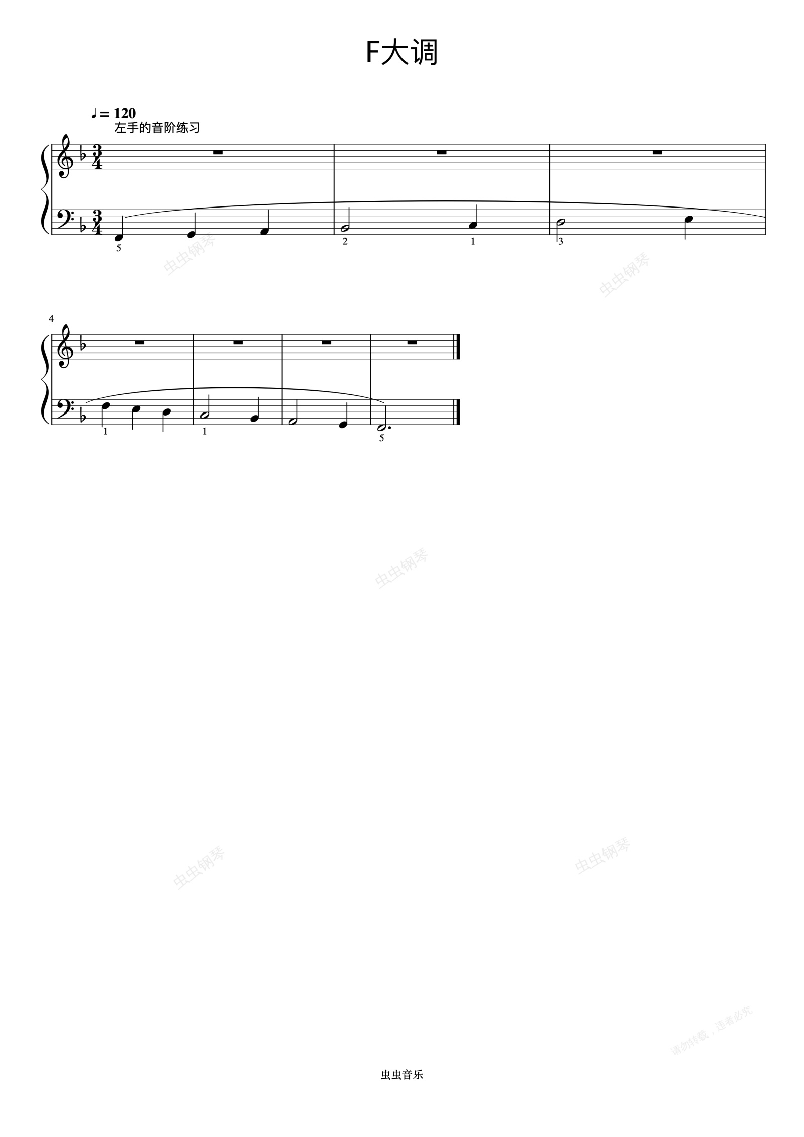钢琴谱:F大调 左手的音阶练习《手指训练操》