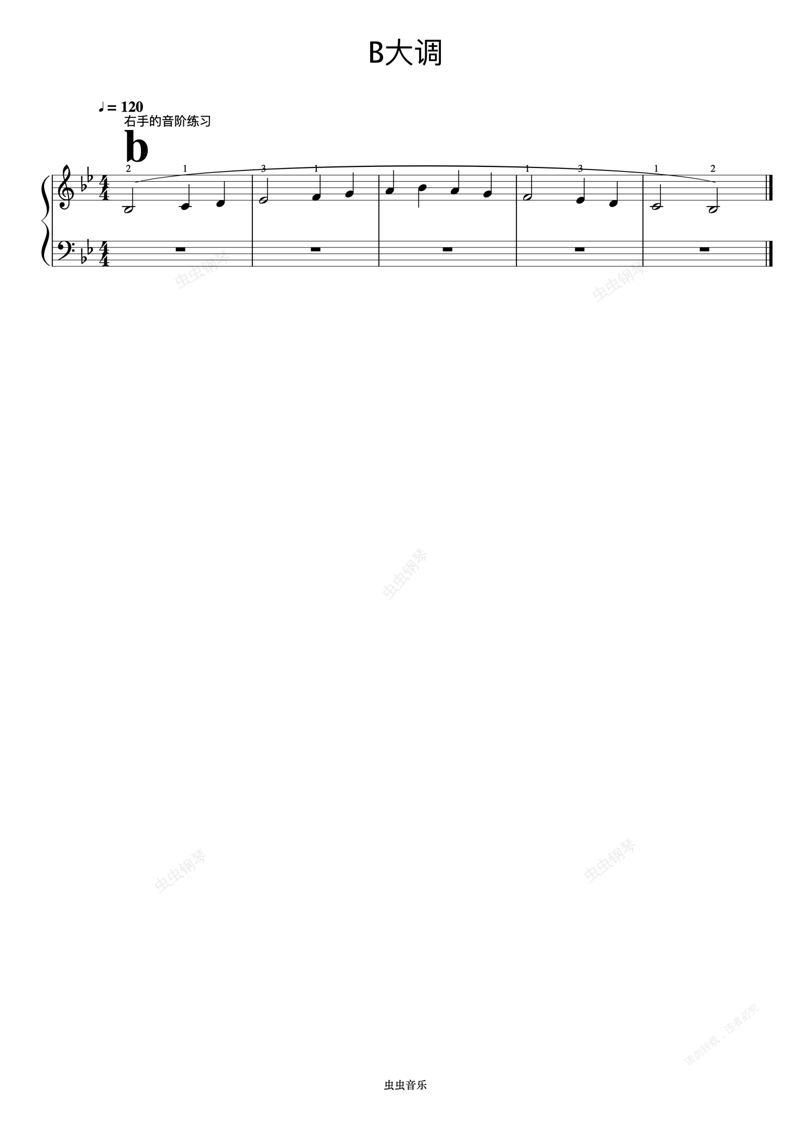 钢琴谱:bB大调 右手的音阶练习《手指训练操》