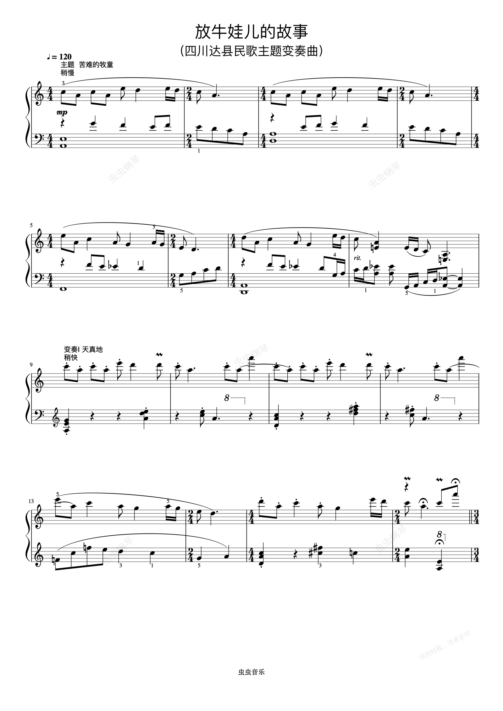 钢琴谱:放牛娃儿的故事《但昭义钢琴作品选集》