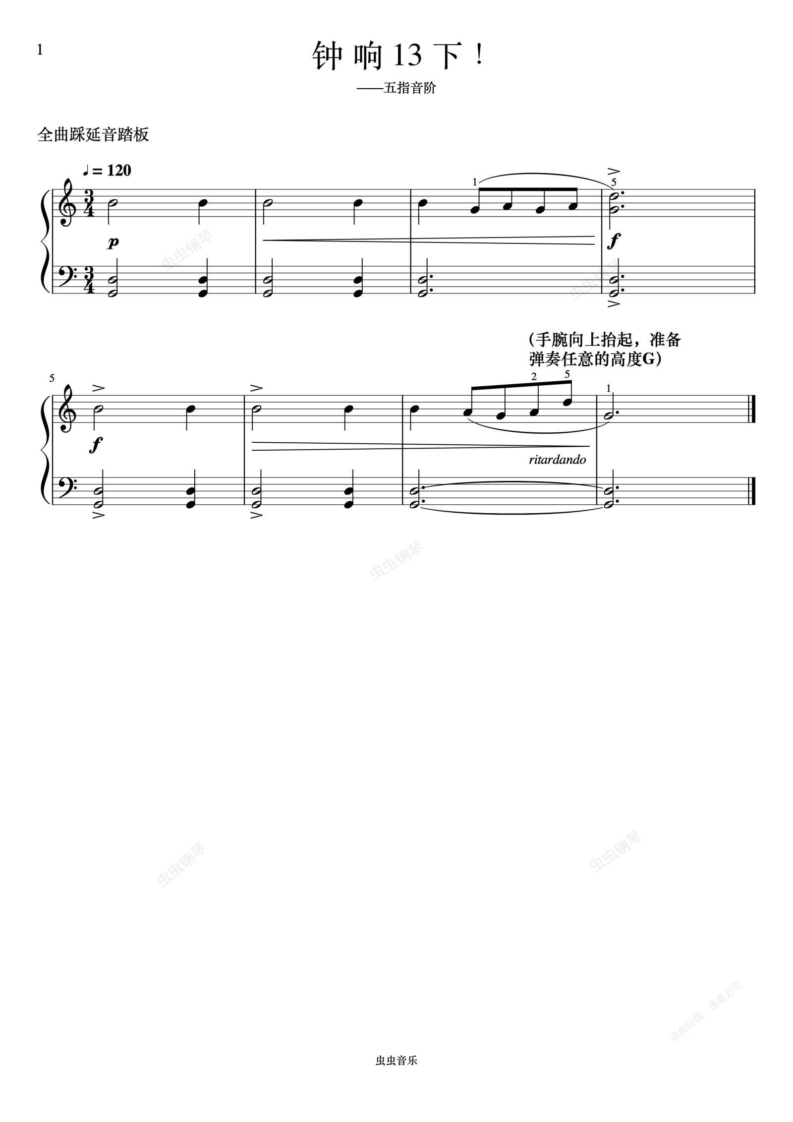钢琴谱:单元二 钟响13下《FBE 课程和乐理》