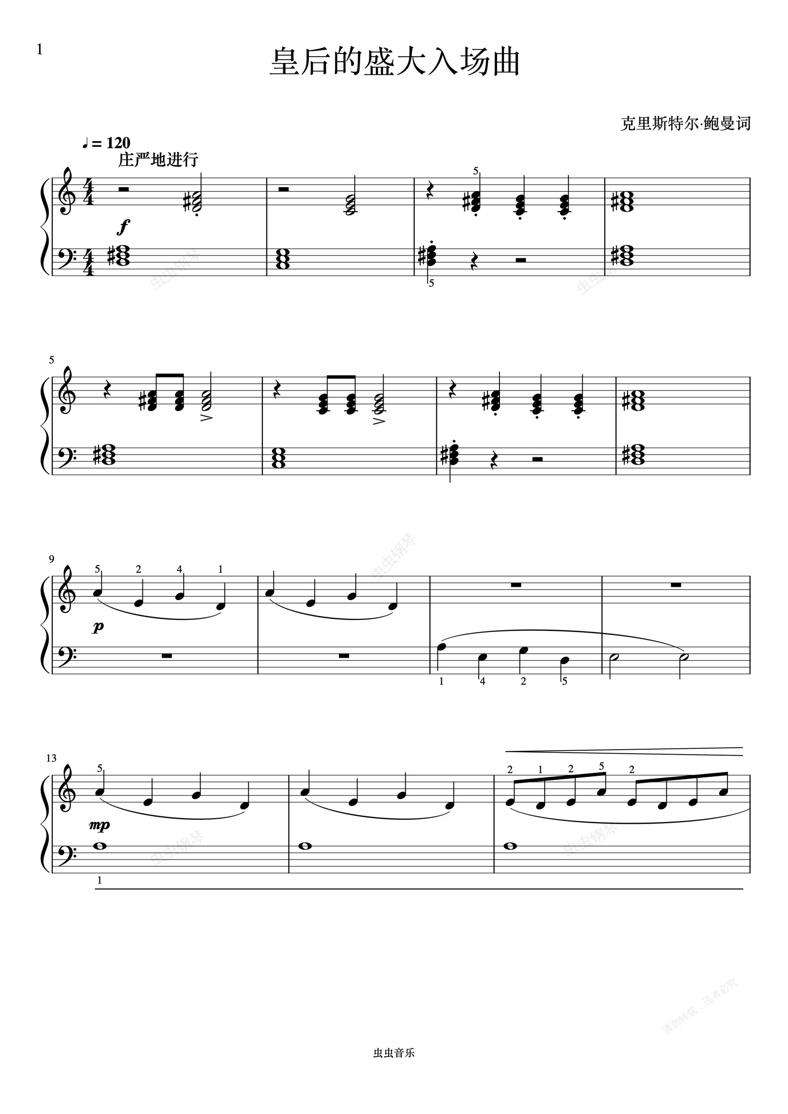 钢琴谱:单元五 皇后的盛大入场曲《FBE 课程和乐理》