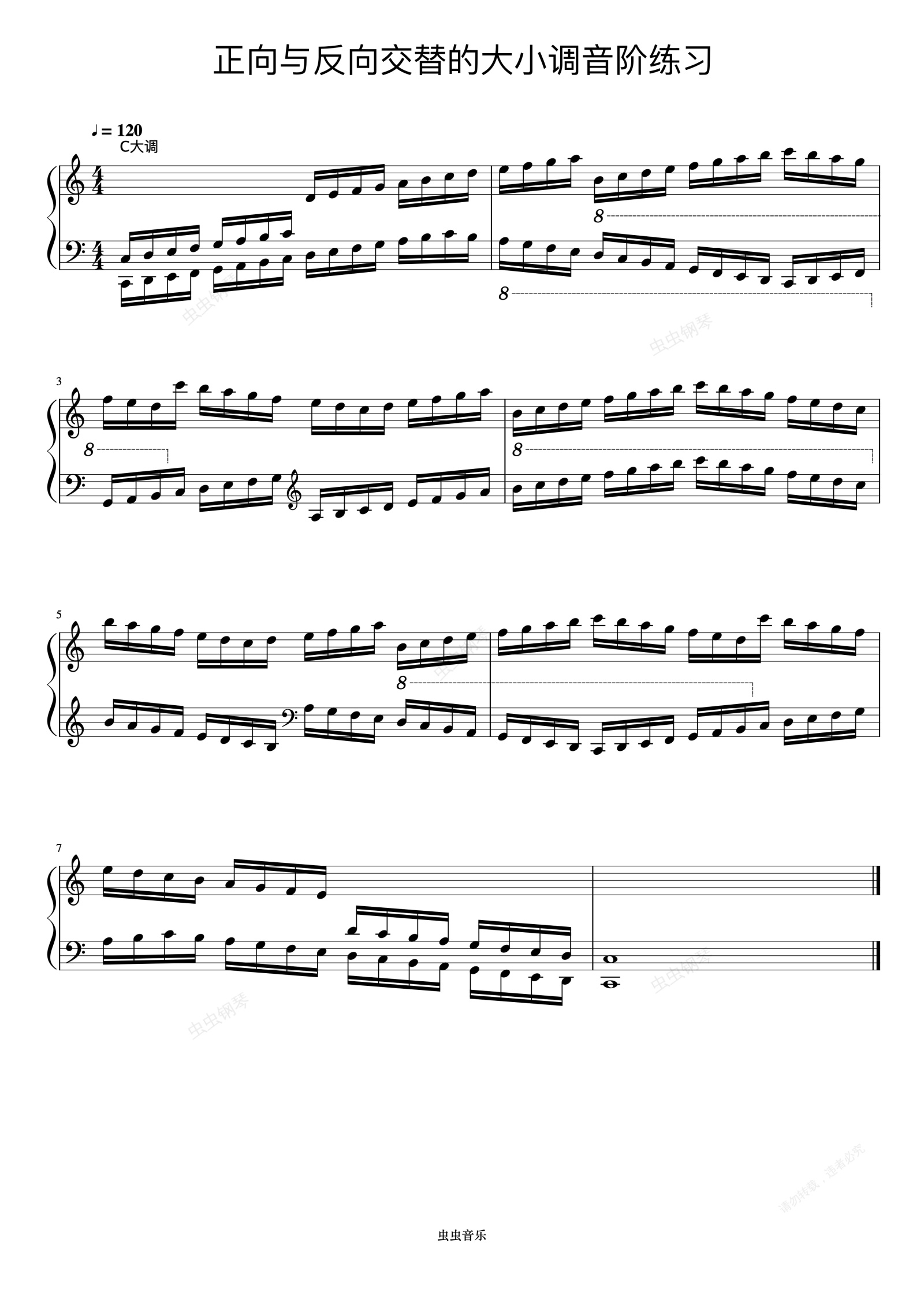 钢琴谱:正向与反向交替的大小调音阶练习01《什密特钢琴手指练习》