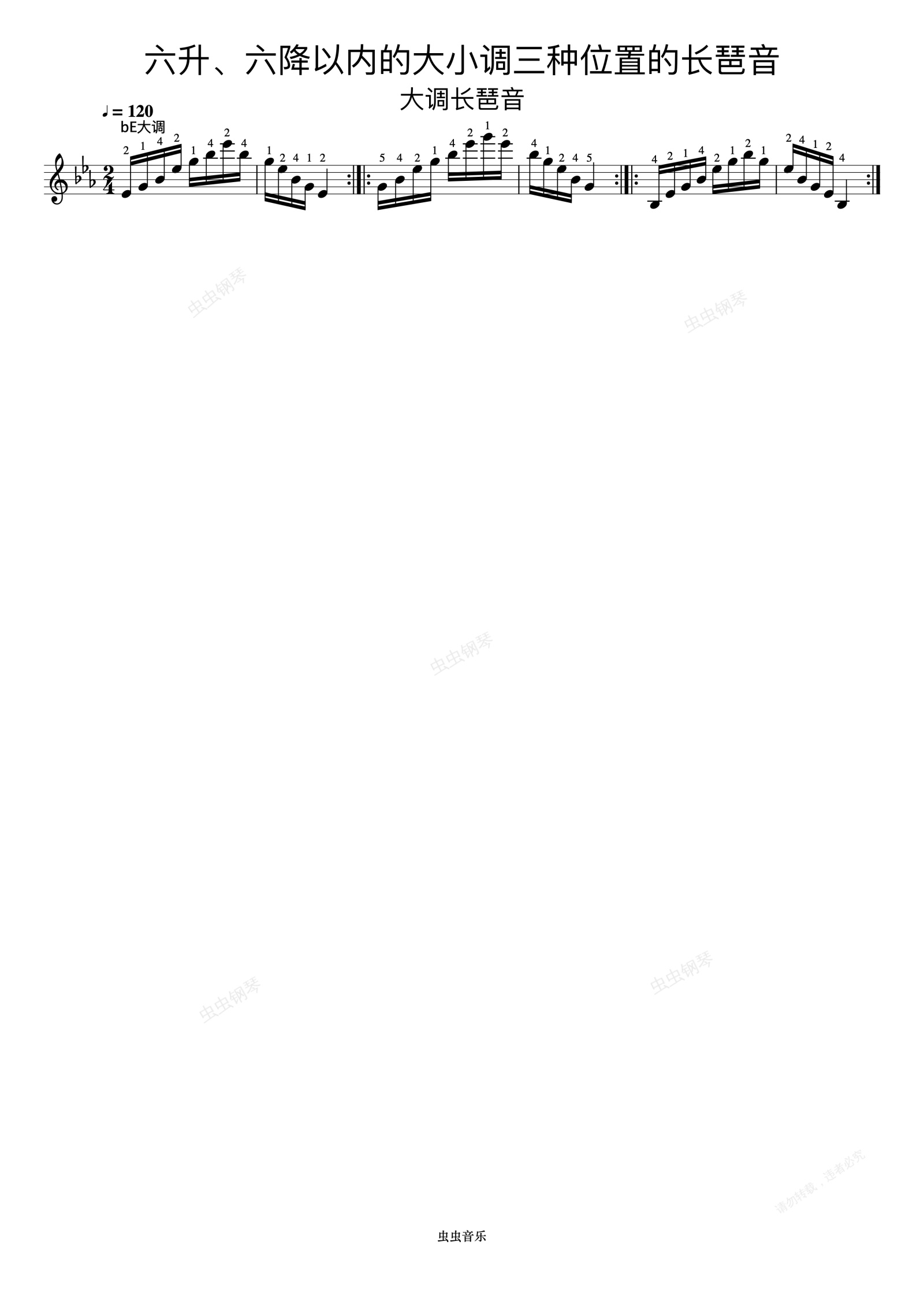 钢琴谱:六升、六降以内的大小调三种位置的长琶音11《什密特钢琴手指练习》