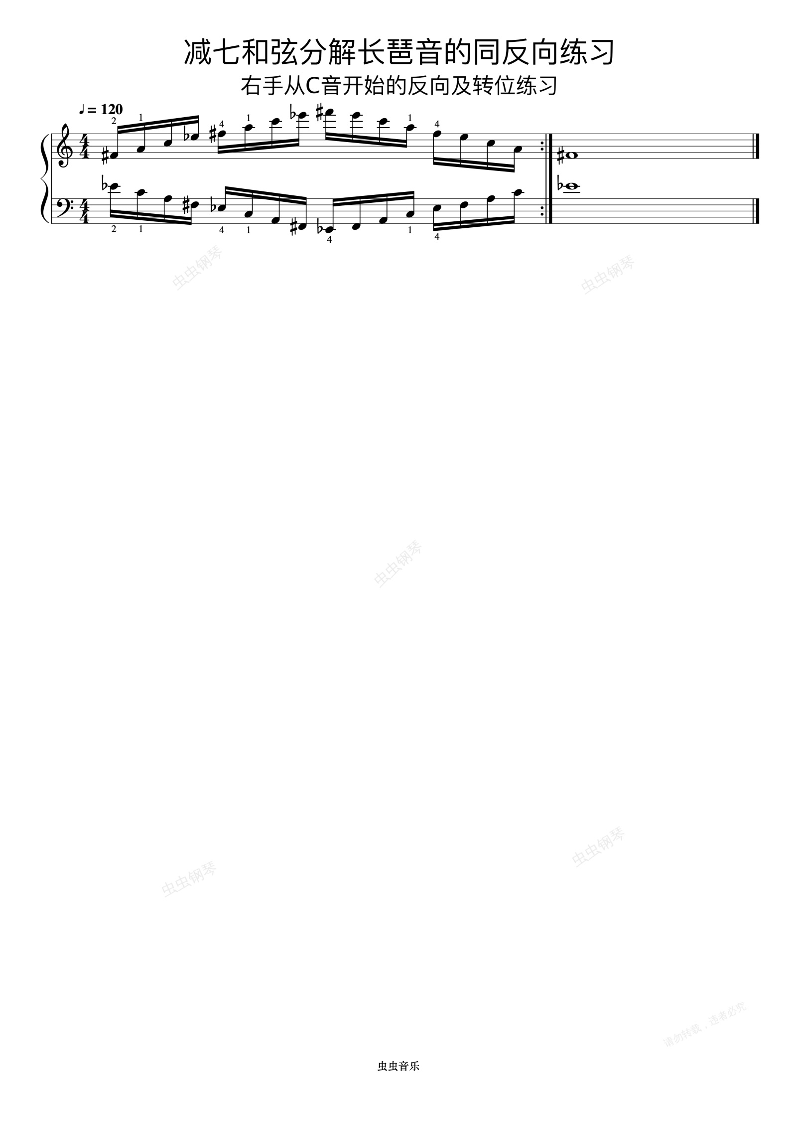 钢琴谱:减七和弦分解长琶音的同反向练习15《什密特钢琴手指练习》