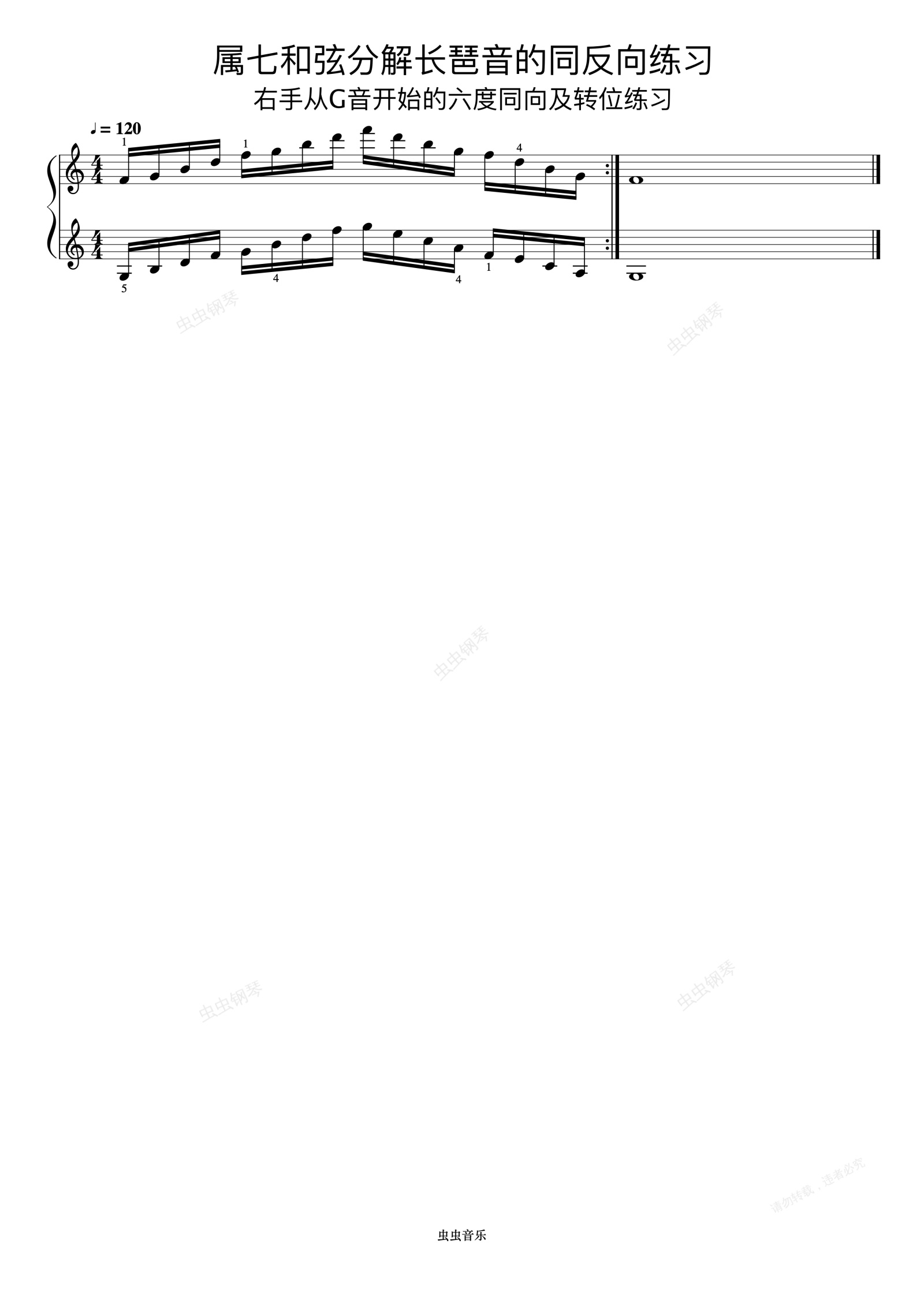 钢琴谱:属七和弦分解长琶音的同反向练习04《什密特钢琴手指练习》