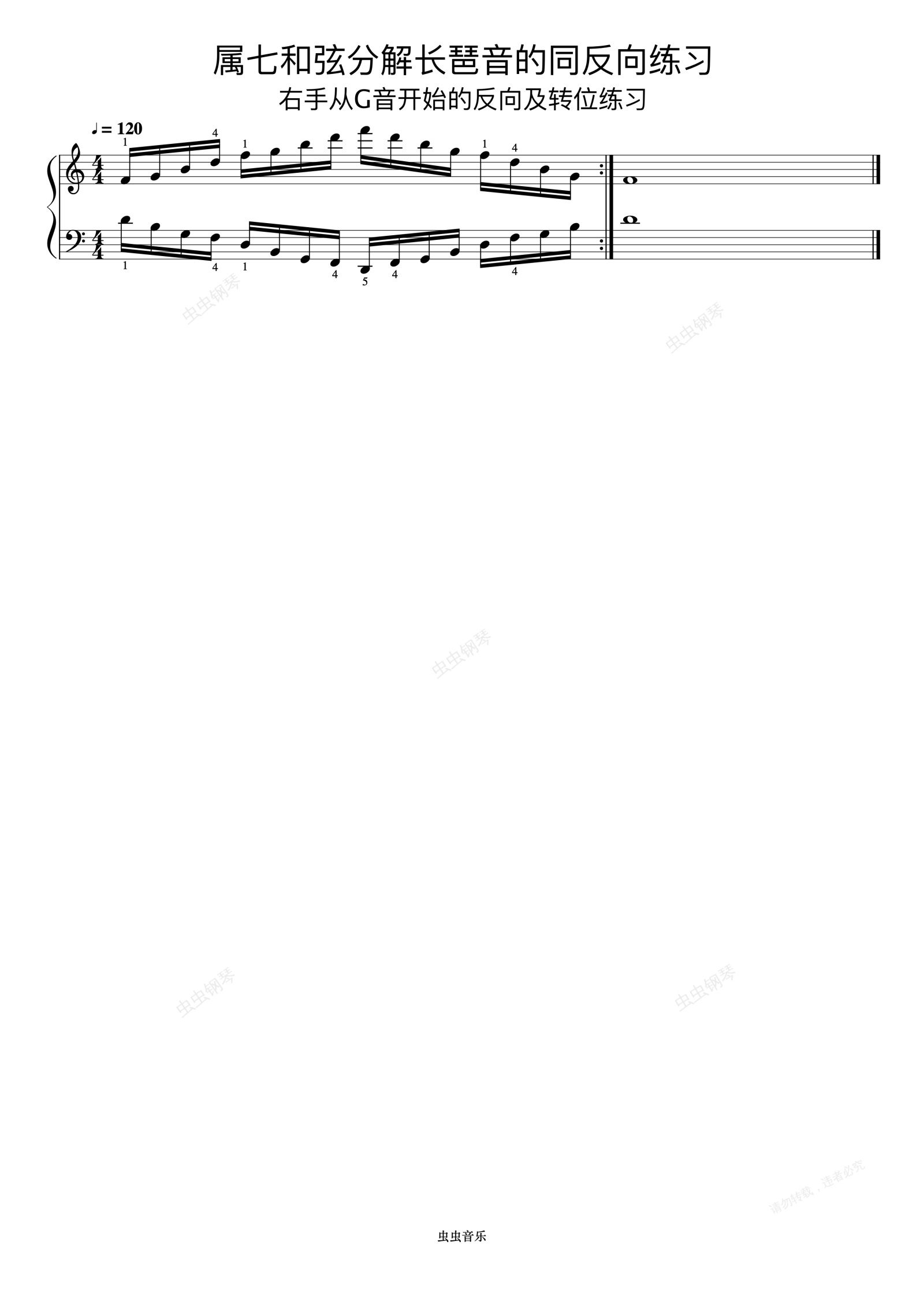 钢琴谱:属七和弦分解长琶音的同反向练习06《什密特钢琴手指练习》