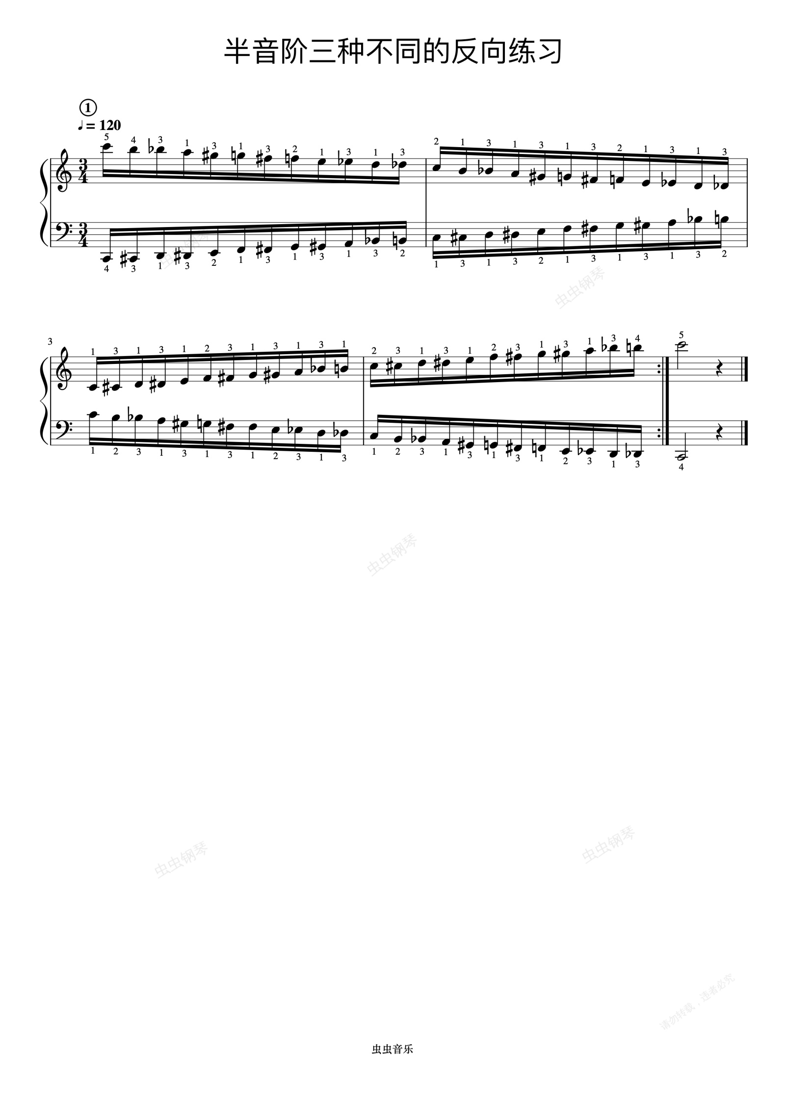 钢琴谱:半音阶三种不同的反向练习01《什密特钢琴手指练习》