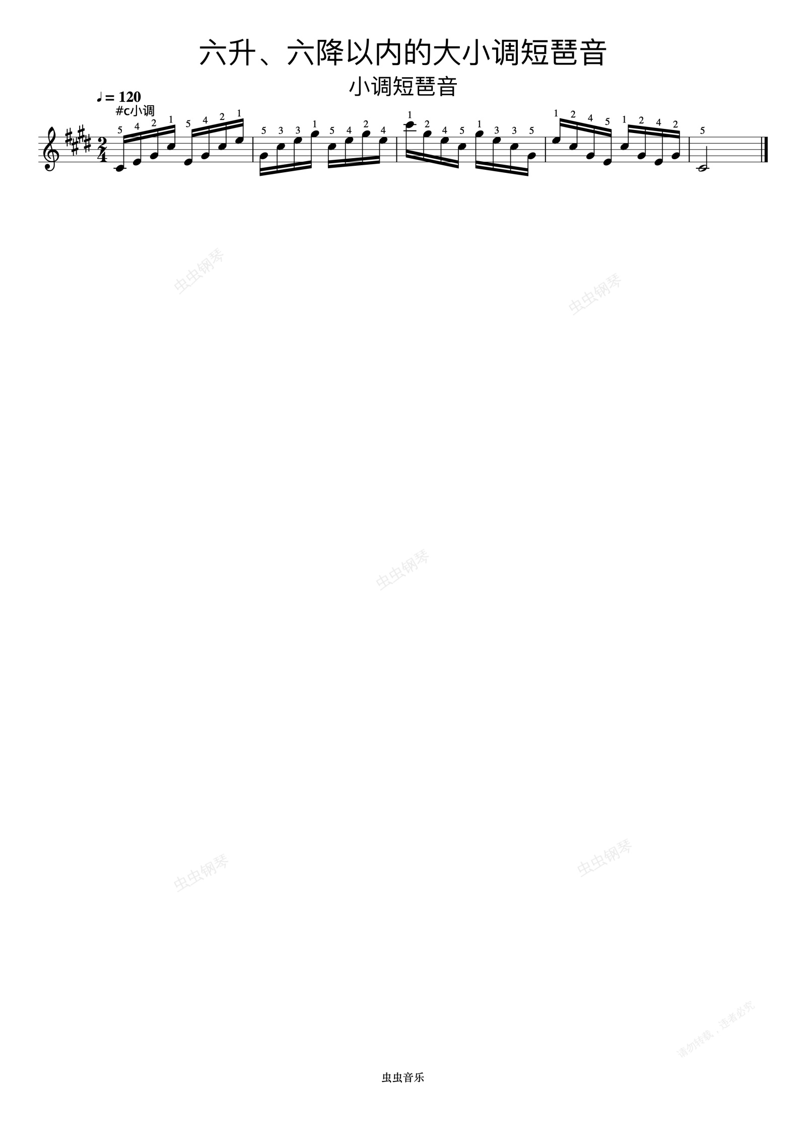 钢琴谱:六升、六降以内的大小调短琶音18《什密特钢琴手指练习》
