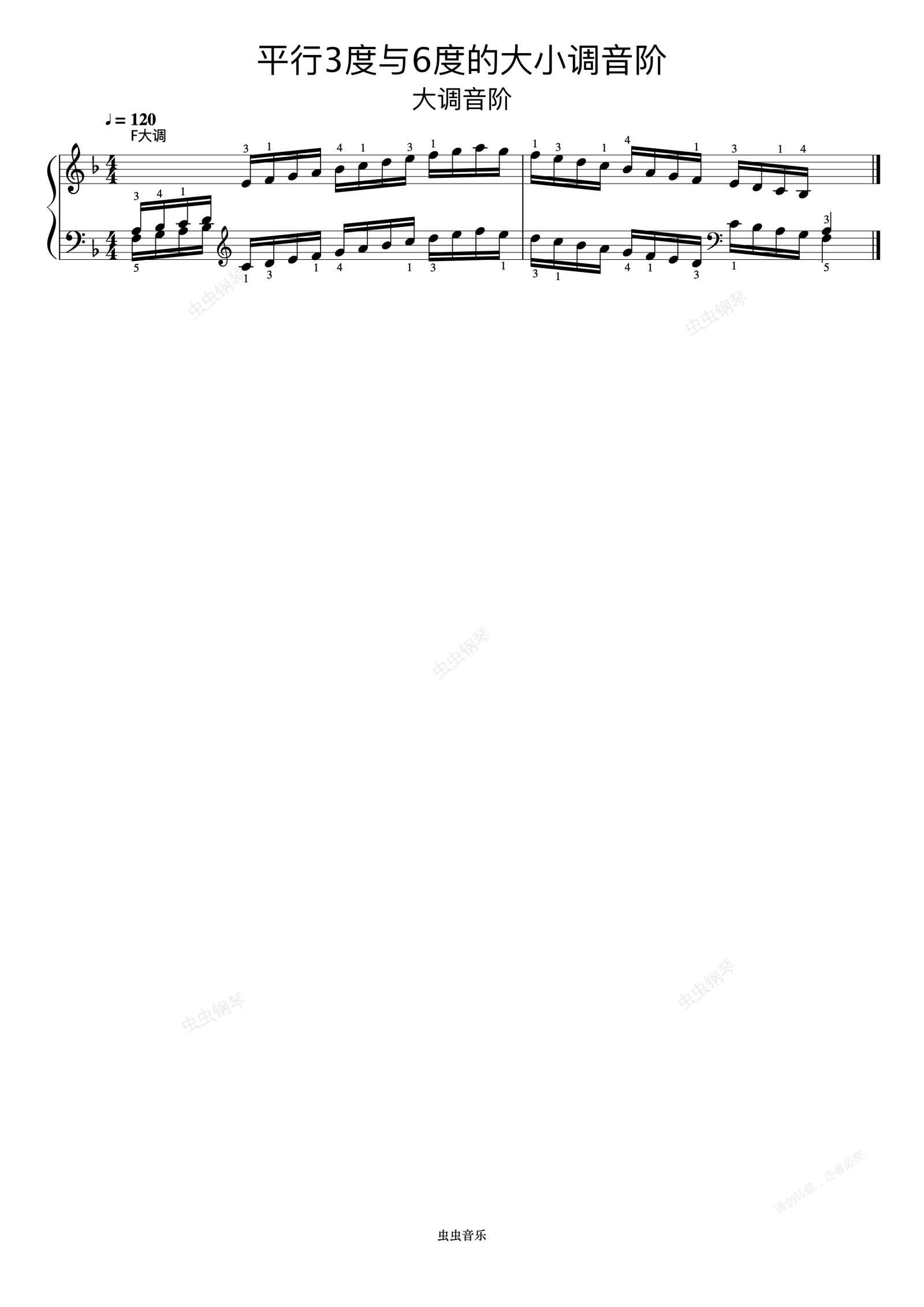 钢琴谱:平行3度与6度的大小调音阶13-1《什密特钢琴手指练习》