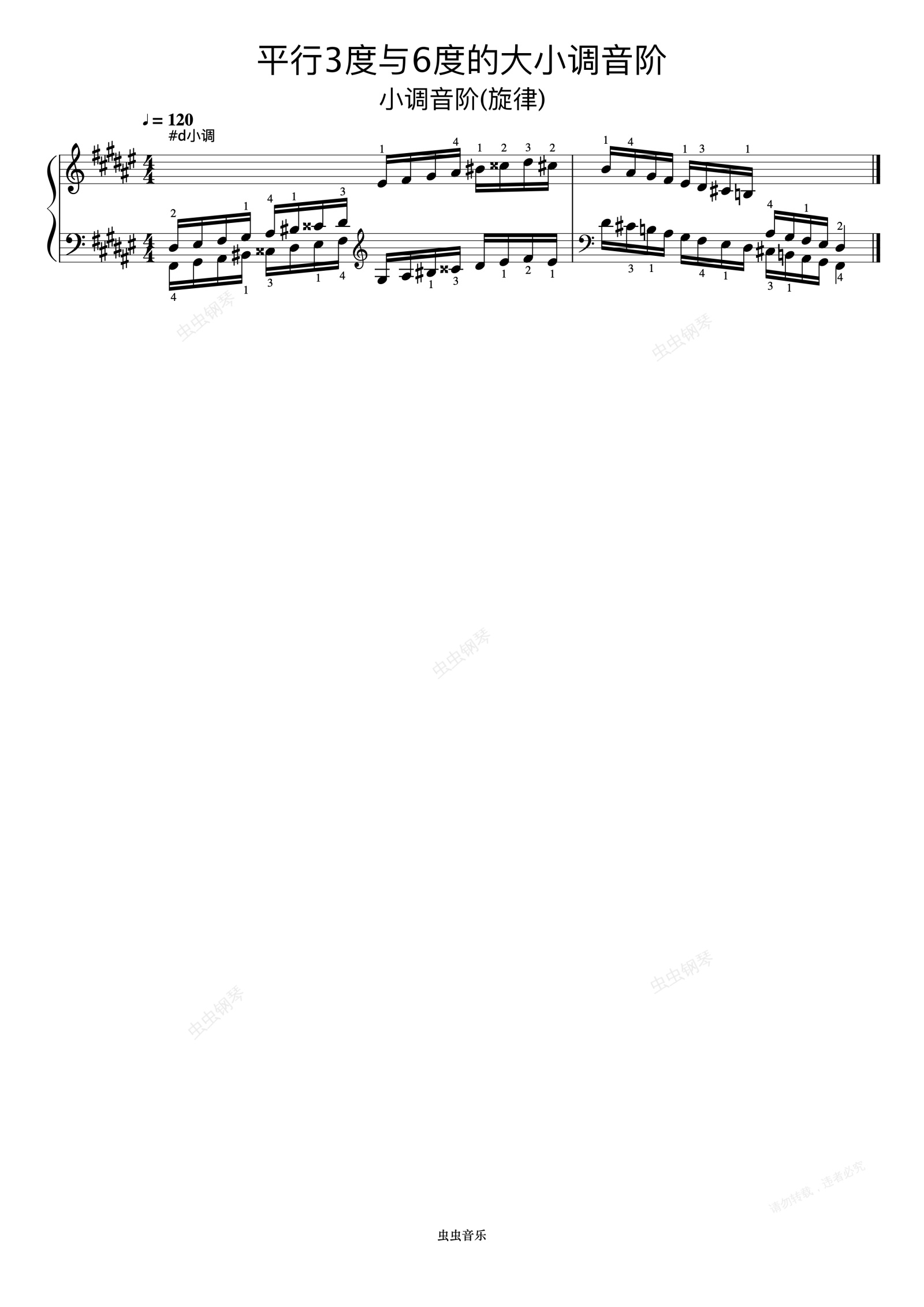 钢琴谱:平行3度与6度的大小调音阶33-2《什密特钢琴手指练习》