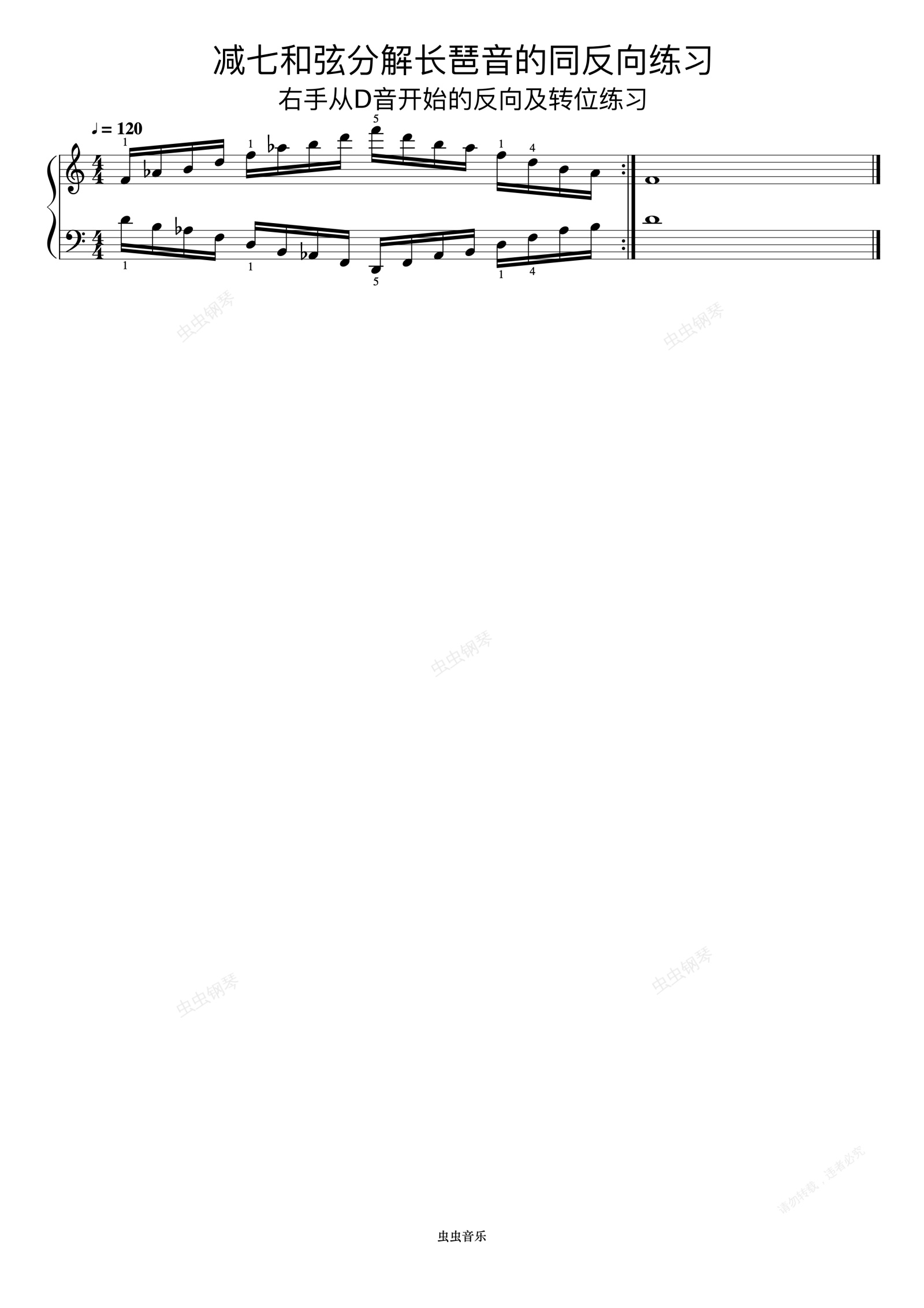 钢琴谱:减七和弦分解长琶音的同反向练习22《什密特钢琴手指练习》