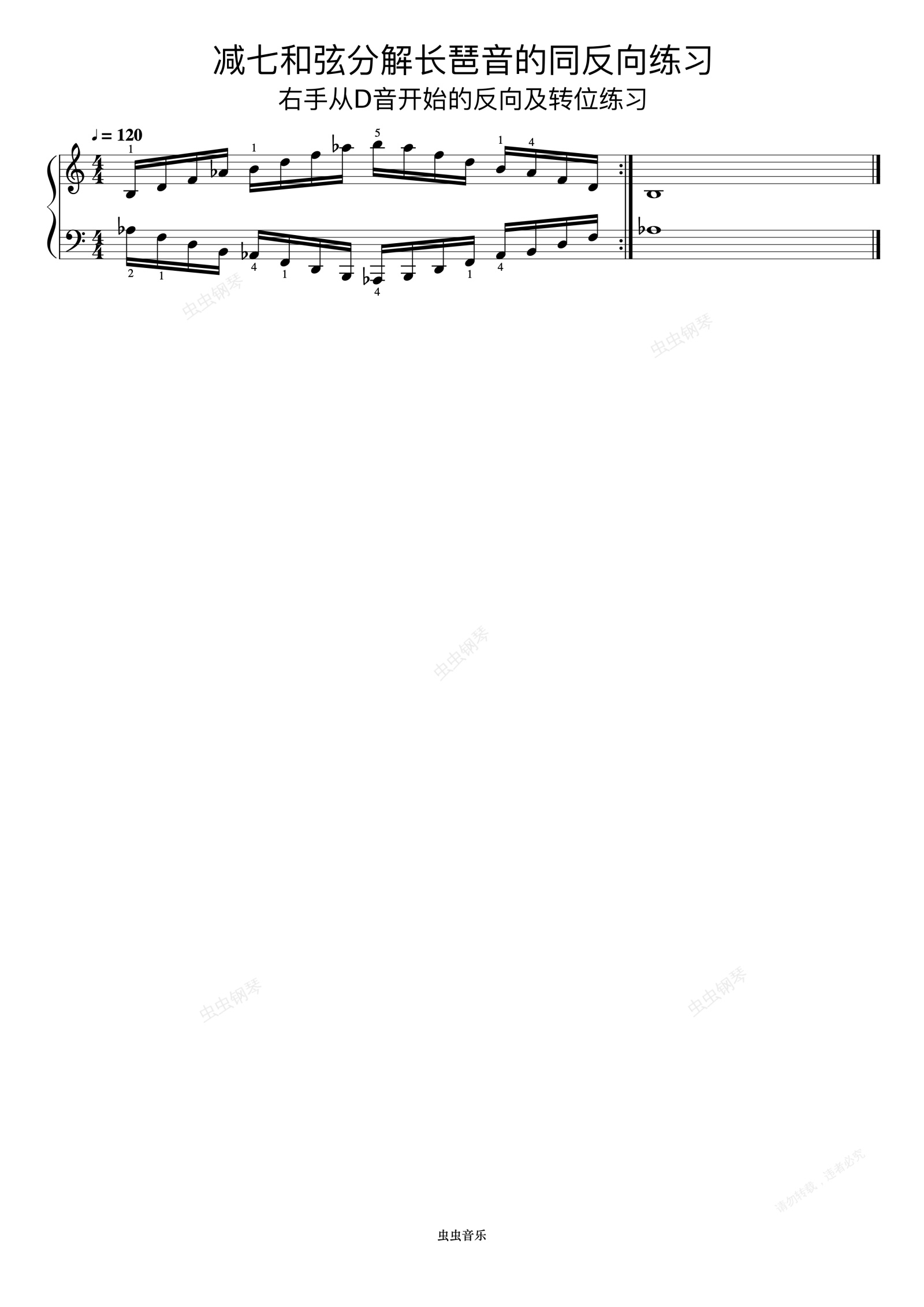 钢琴谱:减七和弦分解长琶音的同反向练习24《什密特钢琴手指练习》